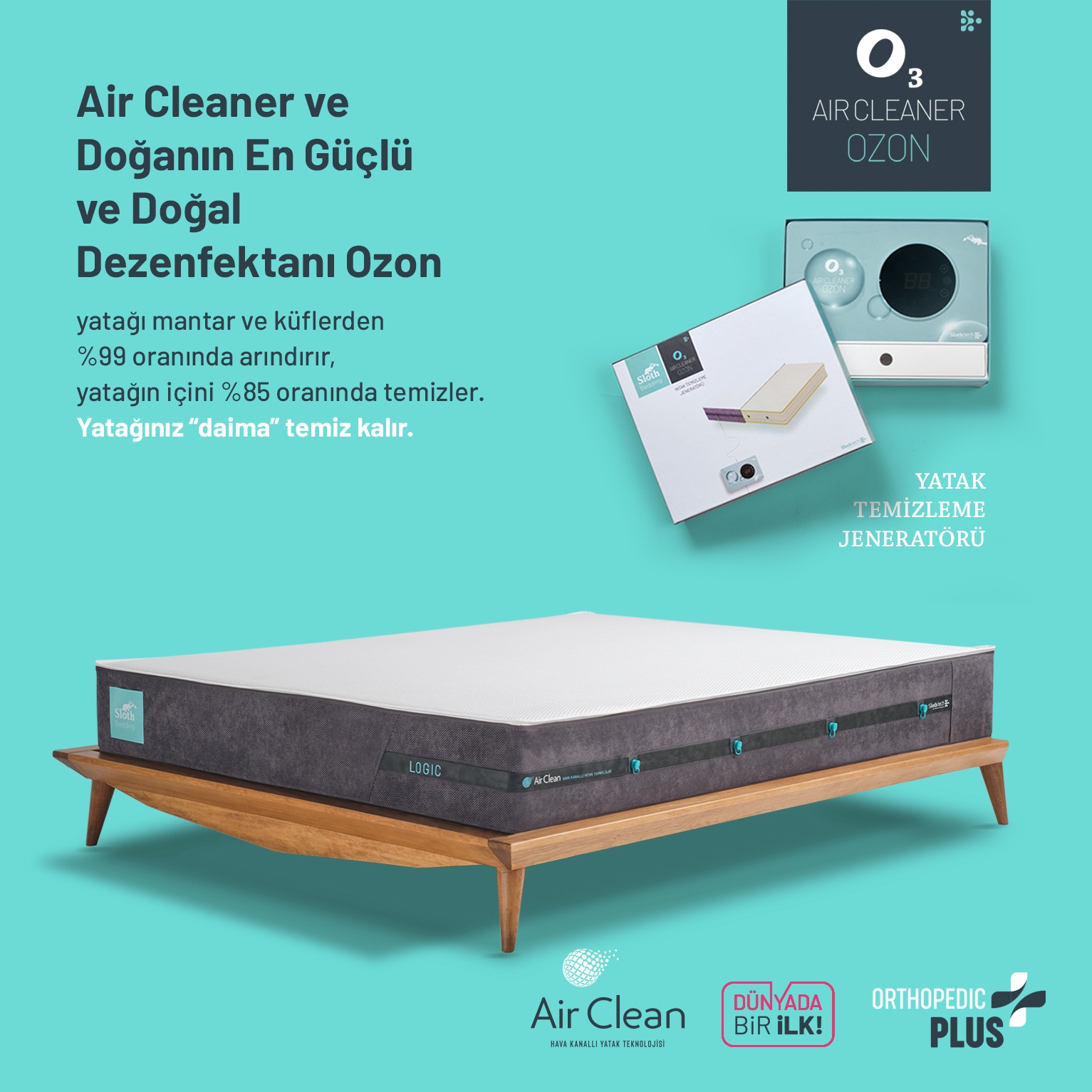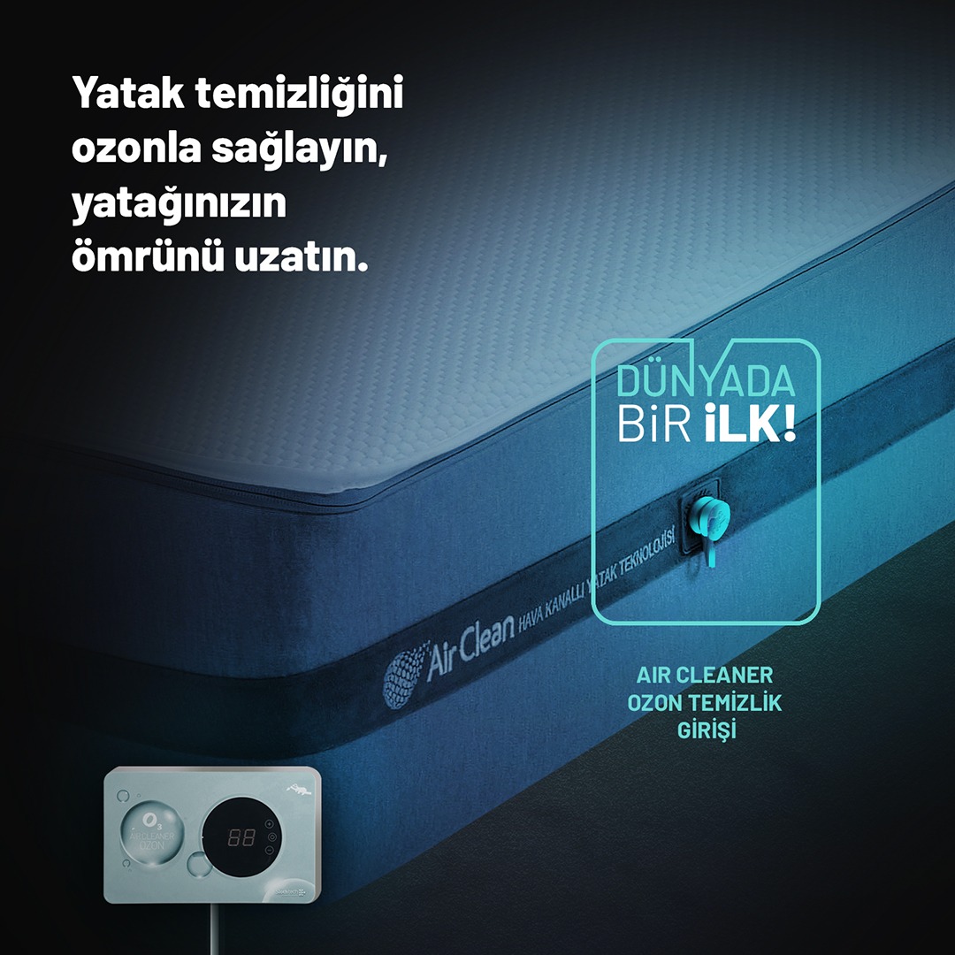 Dünyada ilk ve tek olan Air Clean Teknolojisi’ne sahip Sloth Bedding yatakların içi; yerleştirilen hava kanalları sayesinde temizlenebiliyor. Bu teknoloji için özel olarak tasarlanan Air Cleaner makinesi, yataktaki hava kanalı girişlerine bağlanır. Makine ile birlikte yatağın içine dünyanın en güçlü ve doğal dezenfektanı olan ozon gazının akışı sağlanır. 15 dakika süren bu işlemle birlikte yataktaki tüm zararlı mikroorganizmalar arındırılır. Bu işlem düzenli aralıklarla yapıldığında yatağın hijyenini korunur ve yıllarca ilk günkü temizliğinde kalır.
