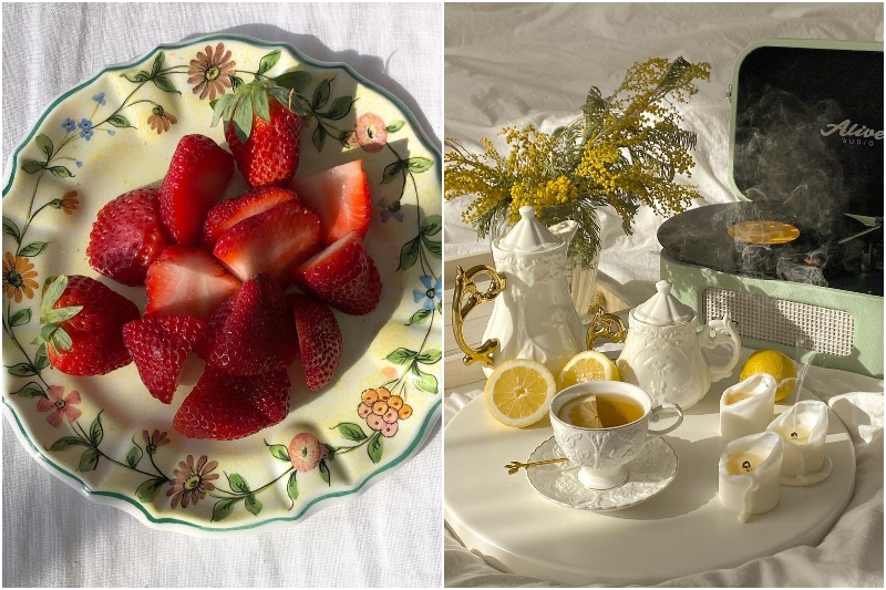 Cottagecore dekorasyon biraz da nostalji içeriyor diyebiliriz. Zihninizde çocukluğunuza doğru kısa bir gezintiye çıkın ve büyükannelerinizin ev dekorasyonunu hatırlayın. Hatırladığınız ilk detayın vintage yemek ve pasta takımları ile fincanlar olduğuna eminiz!