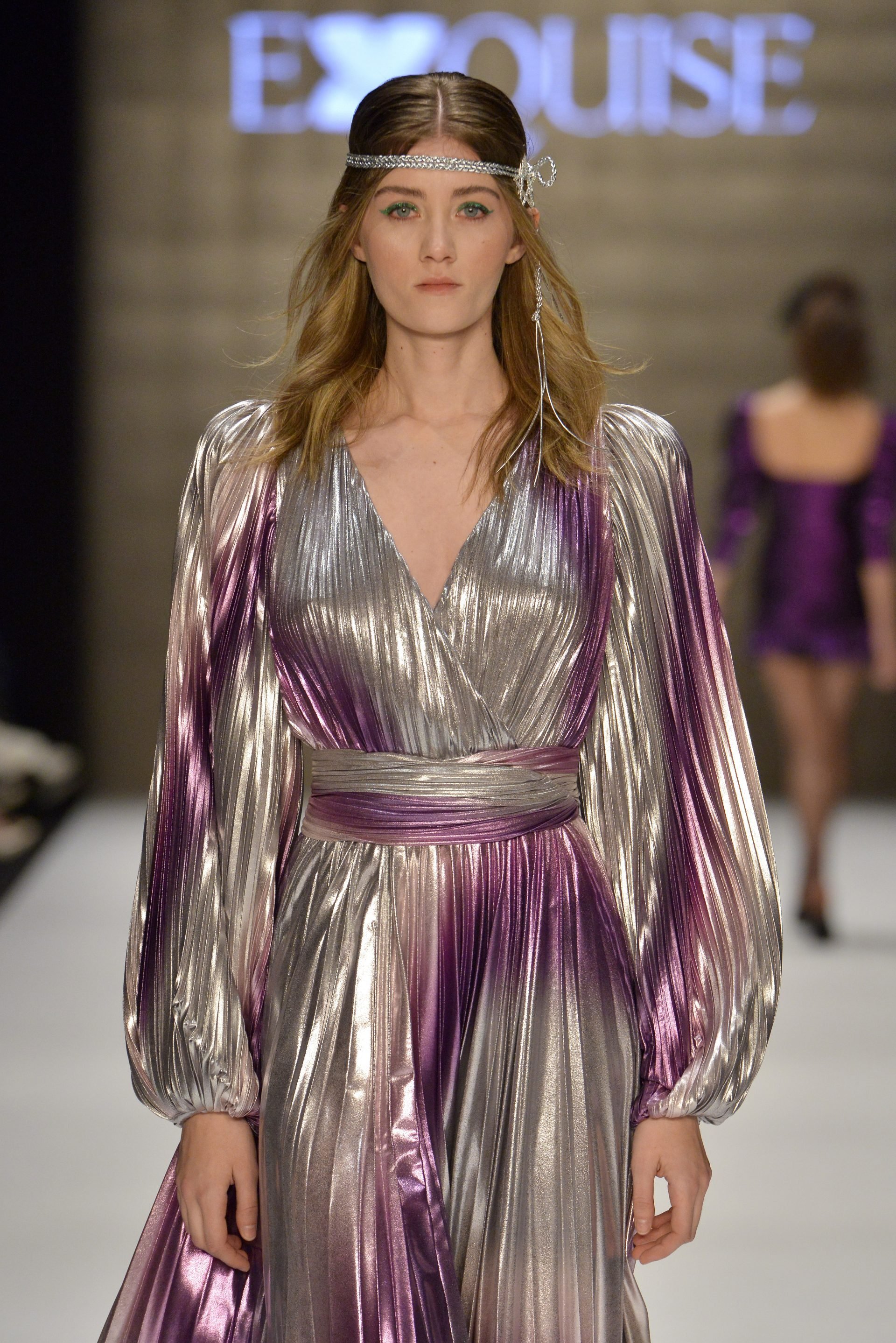 Mercedes-Benz Fashion Week Istanbul’a üçüncü kez kat?lan ve bu sezon ilk kez runway’de yer alan Exquise, 70’li ve 80’li dönemlerden ilham alan #GoldenRhapsody isimli Sonbahar/K?? 2019 koleksiyonunu sundu. Koleksiyon, 70’ler dönemindeki yasaklar?n delindi?i, ba?kald?r?n?n ete kemi?e büründü?ü, ya?ayanlarda iz, ya?amayanlarda hayranl?k uyand?ran, do?aya dü?kün ruhu ile 80’lerin pop kültürünü, a??r?l??? ve cesaretini tecrübe etmi? kad?nlar?n? hat?rlat?yor.