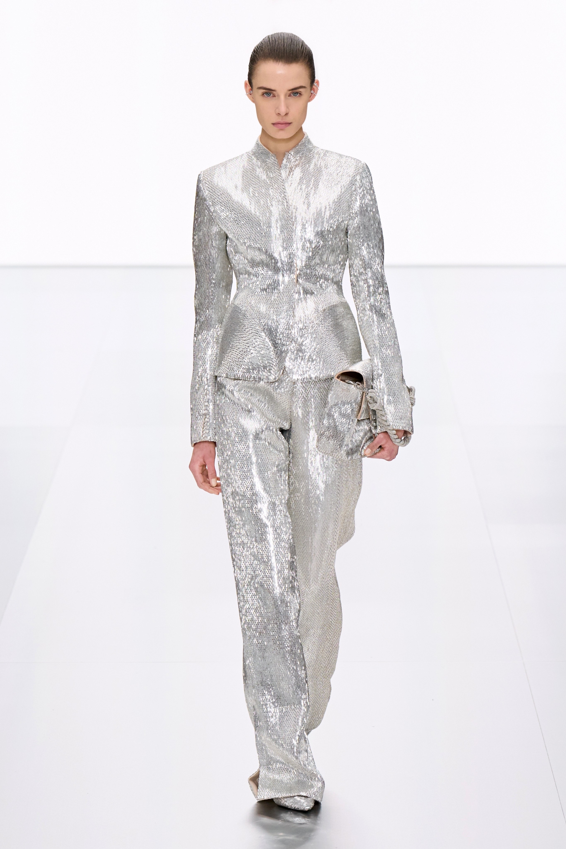 “Fendi’nin couture anlayışı, giyen kişinin insanlığını vurgulamak ve onları sadece “bir şey” değil, “birisi” olarak görmektir.” Defile notlarında yazan bu hümanist yaklaşım, koleksiyonun her bir parçasına yansırken, özellikle dikim teknikleri ve kullanılan kumaşlarda kendini gösterdi. Kim Jones’un ilhamını Karl Lagerfeld’in fütürizminden alması, koleksiyonun retro ve gelecek arasında mükemmel bir denge yakalamasına olanak tanıdı. Gösterişli pullu parçalar, şeffaf elbiseler ve özel dikim pantolonlar, koleksiyonun öne çıkan öğelerindendi. Aynı anda hem minimal hem de maksimal tasarımlar, izleyenleri büyülerken, koleksiyonun tamamında dikkat çeken büyüleyici bir kontrast oluşturulmuştu. Kim Jones’un “insani bir fütürizm” vizyonu, koleksiyonu izleyenlere tarihsel bir derinlik ve çağdaş bir zarafet sundu.