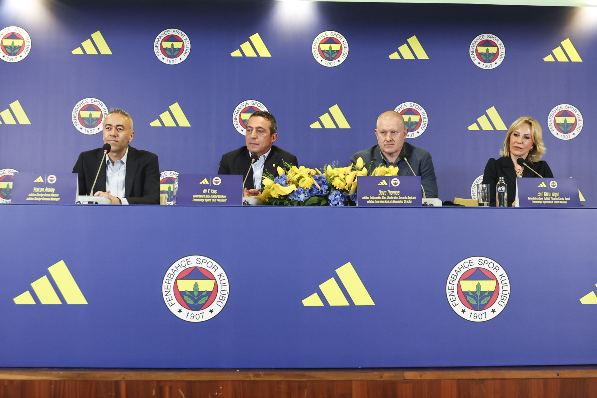 Fenerbahçe Spor Kulübü Başkanı Ali Koç imza törenindeki konuşmasında, “Bugün, Türk sporunun en güçlü temsilcilerinden Fenerbahçe ve adidas’ın yeniden omuz omuza, aynı yolda bir hikâyeye başlamasının gururunu yaşıyoruz. 2025/2026 sezonundan itibaren önümüzdeki 5 yıl boyunca; futbol, basketbol ve voleybol branşlarındaki tüm takımlarımız, global arenanın öncü markalarından adidas’ın özel tasarımlarıyla sahalara çıkacak. Fenerbahçe ve adidas çok güçlü bir ortak geçmişe sahip iki marka. 1984’te başlayan bu köklü iş birliği bugün yeni bir enerjiyle, daha büyük hedeflerle yeniden hayata geçiyor. İki büyük markanın geçmişten gelen güçlü hikayelerinin bugün yepyeni bir heyecanla, yeniden başlaması hepimiz için çok anlamlı. Birlikte yürüdüğümüz uzun yıllar boyunca kazandığımız zaferlerde, eşsiz anılarımızda, tribünlerdeki coşkumuzda yanımızda olan adidas’la, şimdi yeni başarıları birlikte yazacağımıza inanıyorum” dedi.