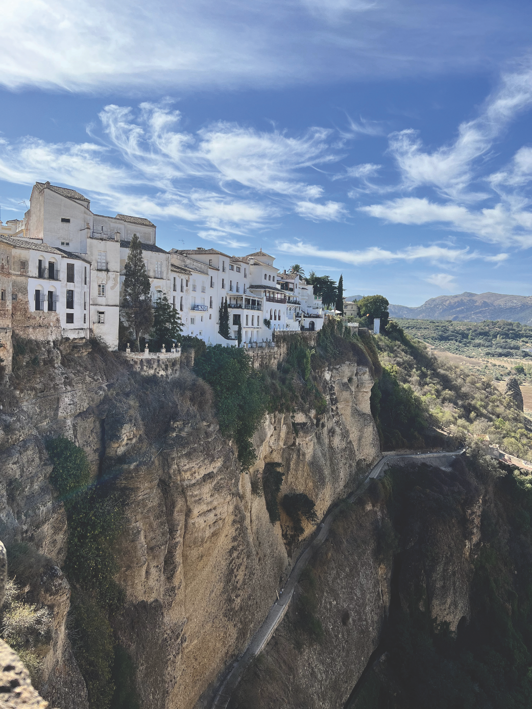 Sevilla’ya giderseniz şehre bir saatlik uzaklıkta olan Ronda’yı da mutlaka ziyaret etmelisiniz. Ronda, Endülüs’ün beyaz köylerinden en ünlü olanı. Günübirlik gezilecek bir yer Ronda, kalmanıza gerek yok. Kasabanın en dikkat çekici yanı El Tajo Kanyonu ve bu kanyonun üstüne inşa edilen bembeyaz bir şehir Ronda. 120 metre derinliğe sahip kanyonu izlemesi yukarıdan ayrı, aşağıdan ayrı büyüleyiciydi. Kanyondan aşağı doğru nehir ile buluşabileceğiniz bir yürüyüş yolu mevcut, iniş çok rahat ancak yokuşlu çıkış yolu için aynı şeyi söyleyemeyeceğim. Kireçtaşından oluşan derin kanyonun ikiye böldüğü kasaba, deniz seviyesinden 760 metre yükseklikteki tepelerin arasından akan Guadalevin Nehri’nin iki yanına kurulu. İlk olarak Julius Caesar zamanında kurulan kasaba, bugüne kadar değişen jeolojik koşullara rağmen hayatta kalmayı başarmış. Ernest Hemingway ve Orson Welles burada sayısız yaz geçirmiş, hatta Hemingway İspanya İç Savaşı’nı anlatan Çanlar kimin için çalıyor? kitabını da burada yazmış.