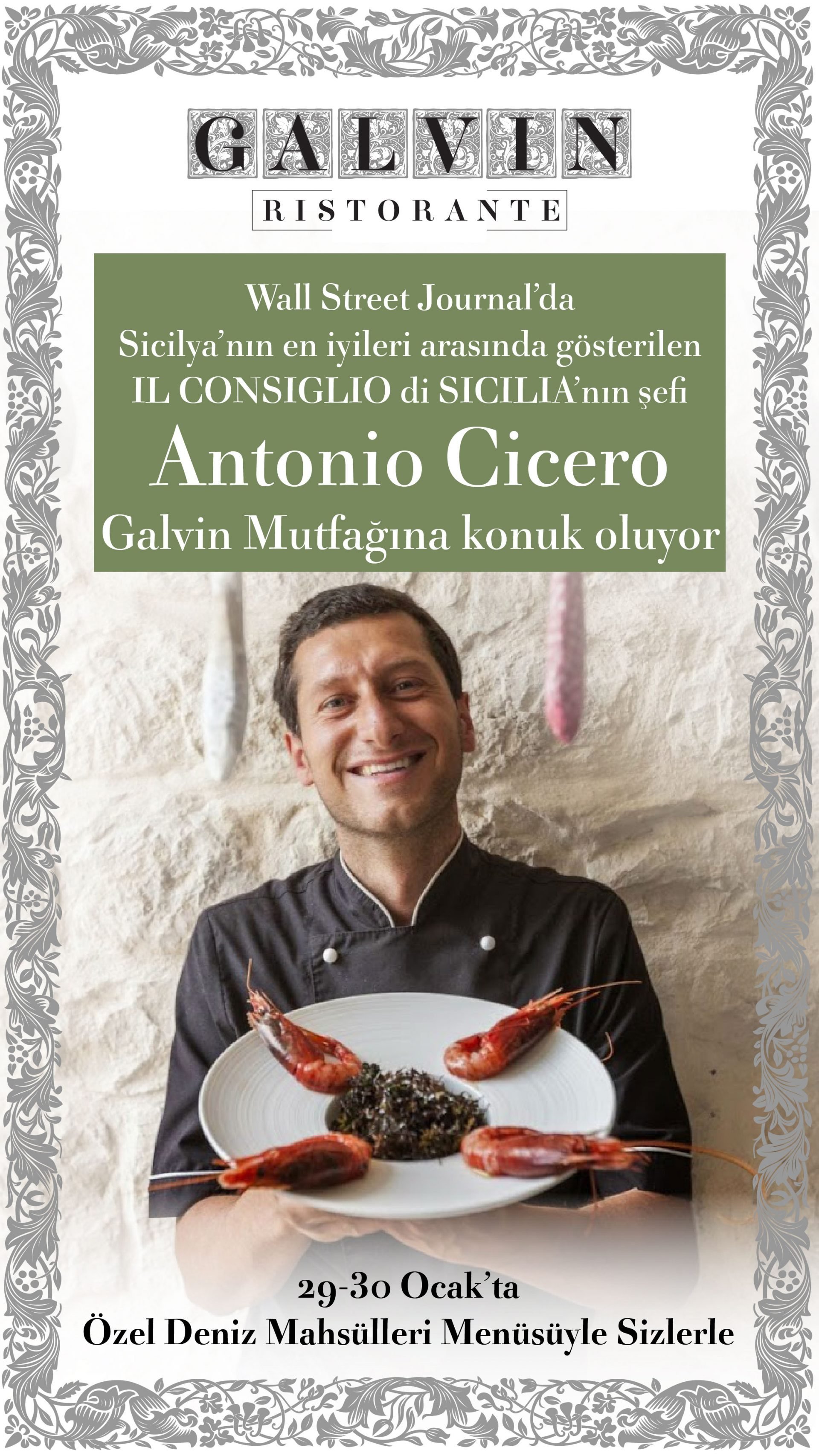 Özel lezzet tutkunlar?, Ni?anta??’da tarihi Maçka Palas binas?nda yer alan Galvin Ristorante’de, ünlü Sicilyal? ?ef Antonio Cicero’nun haz?rlad??? özel mönüyü, 29-30 Ocak tarihlerinde tatma ayr?cal???n? ya?ayacak.