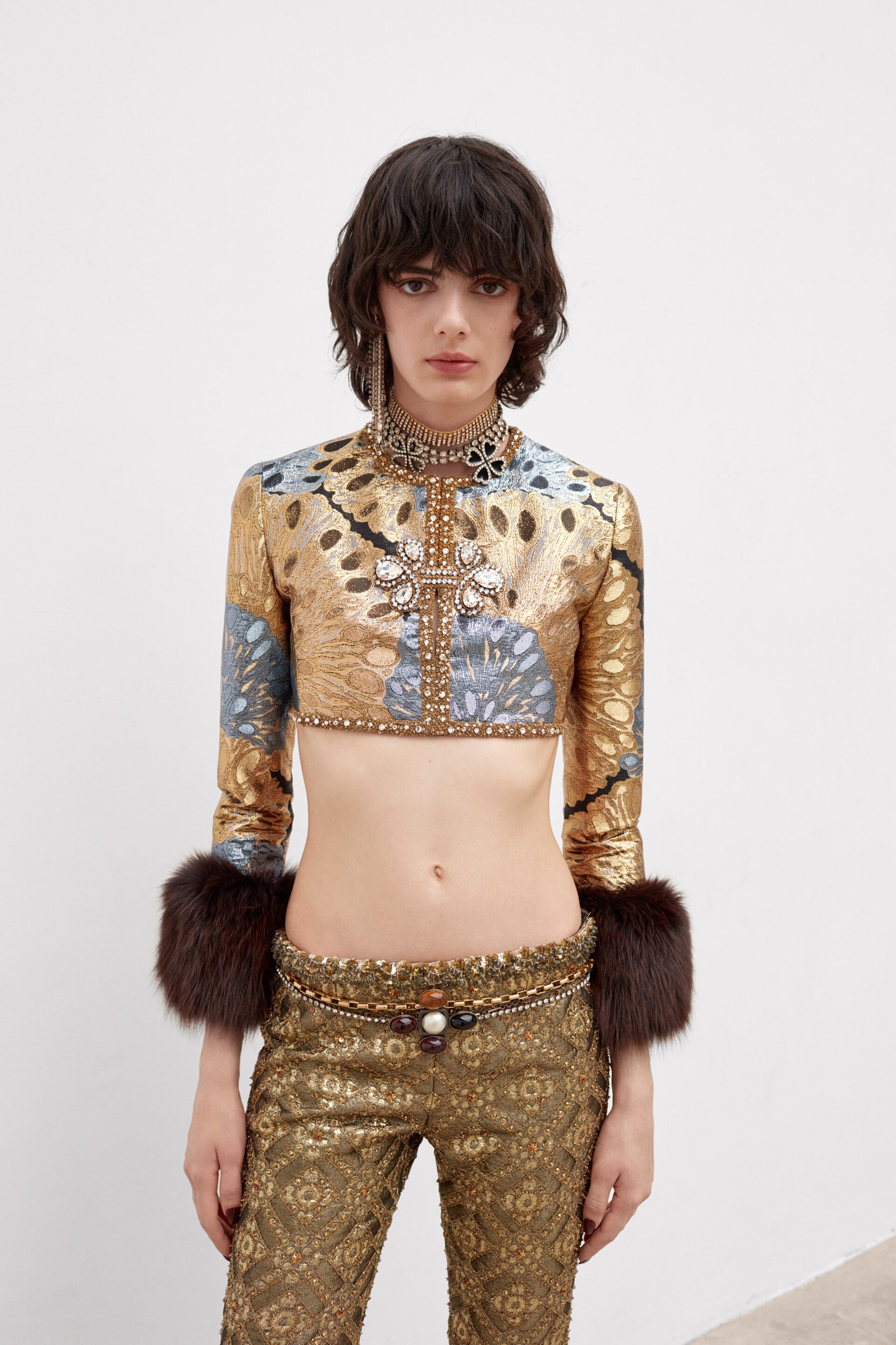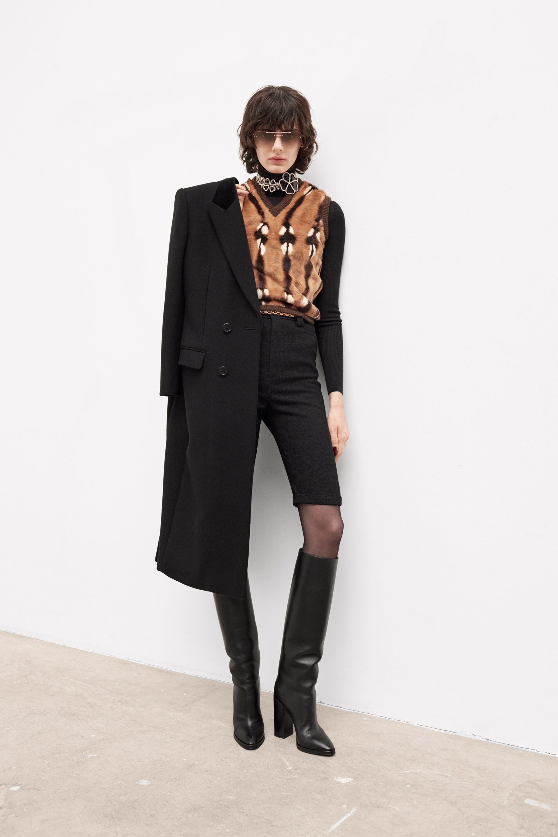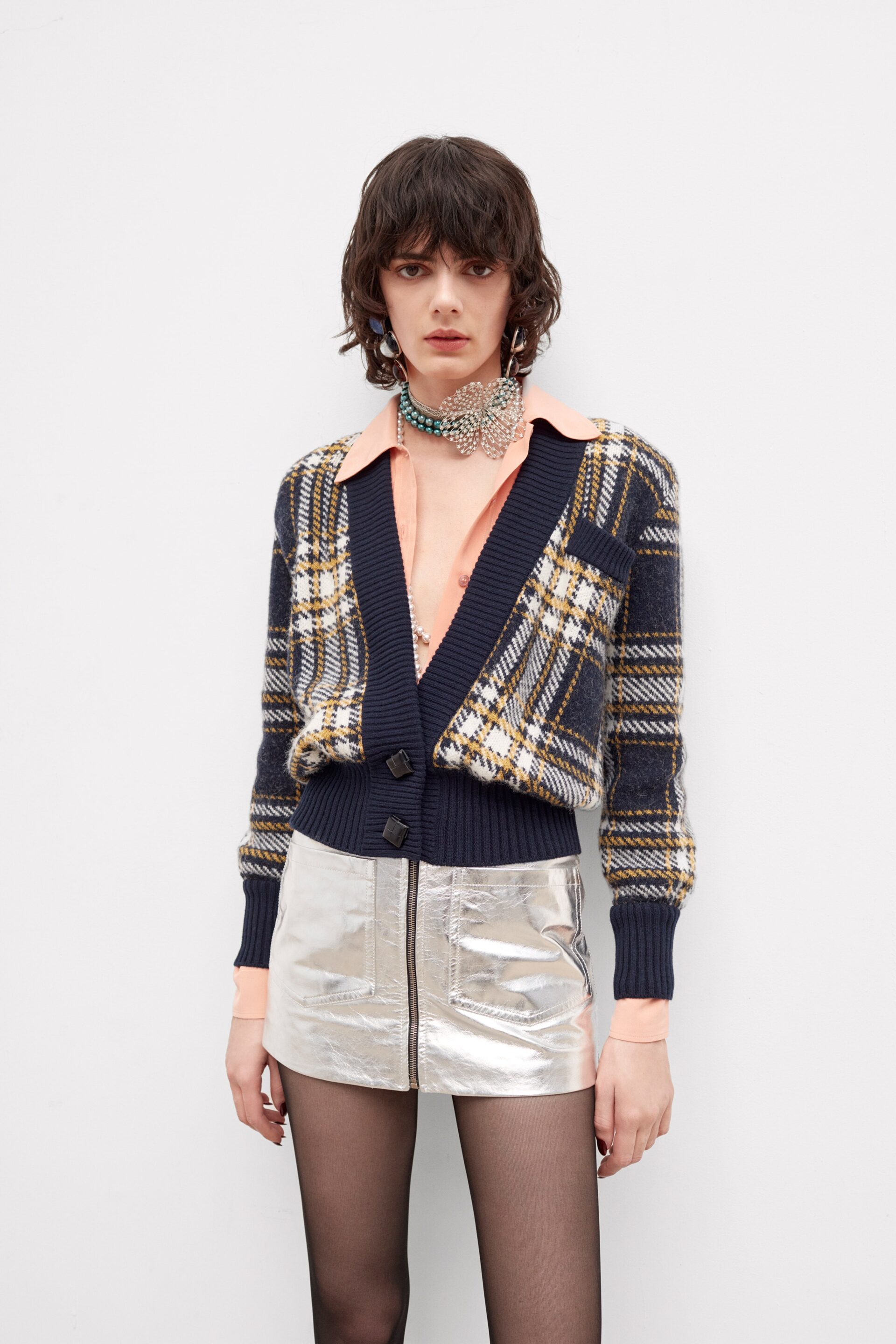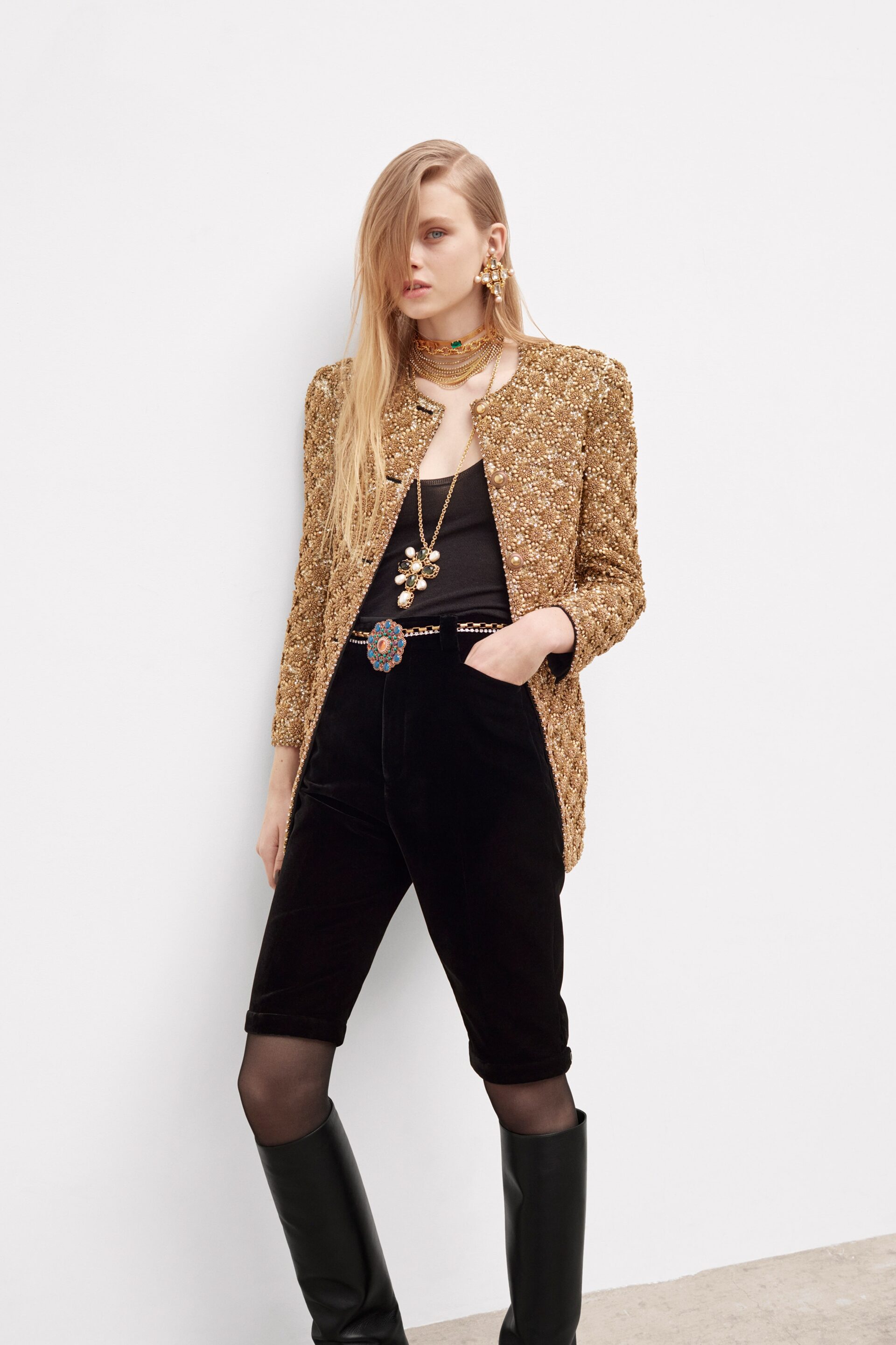Bu kez Mösyö Saint Laurent’in erkek giyim kumaşlarında kullandığı klasik ve zarif, 60’ların ortalarındaki dokulara dikkat çekilen koleksiyonda yine Saint Laurent’in tercih ettiği monokromatik palet; bu kez menekşe, kobalt, altın ve şartröz sarısı ile zenginleşiyor. Vaccarello bu formülü “60’ların şekilleri ve 80’lerin renkleri” olarak tanımlıyor.