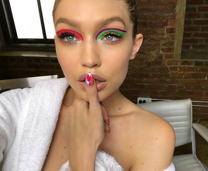 Model olmanın en eğlenceli yanlarını ve gösterişli hallerini paylaşmaktan geri durmayan Gigi Hadid, şimdi de gökkuşağı makyajıyla radarımızda.