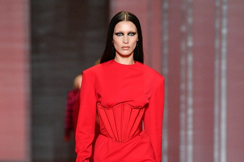 Gigi Hadid, uzun kollu ve karın kısmı dekolteli bir elbise giyerken, Bella ise korse detayıyla dikkat çeken mini bir elbiseyle podyumda nefesleri kesti. İki kardeşin de elbiselerinin altında latex kırmızı ve dikkat çeken taytlar vardı. Ek olarak Versace tüm modellerinde de olduğu gibi Bella ve Gigi Hadid’in makyajında da dumanlı göz görünümü tercih etti.