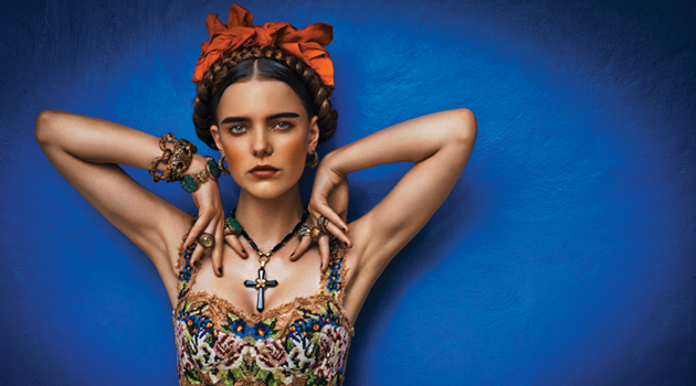 Sezonun karakteristik saç modelleri ve ihtiraslı makyajı; Meksika’nın geleneksel Ölüler Günü ruhu, Frida Kahlo ve Yucatán’ın zengin renkleri çevresinde şekilleniyor. FRIDA RUHU Genel görünümünüzü saç örgülerinizi ön plana taşıyıp; dudakları ve gözleri de belirginleştirerek tamamlayın, mücevher etkisi yaratan dokunuşlar eklemeyi ise sakın unutmayın. Saçta: TIGI Style Treats Flexible Finishing Saç Spreyi Yüzde: Elizabeth Arden Pure Finish Bronze Powder, Soft Radiance Kaşlar: Dior Diorshow Brow Styler Ultra – Fine Precision Kahverengi Kalem Bluz Dolce&Gabbana, kolye Emilio Pucci, küpe, bronz zincir bilezik, bronz tokalı bilezik, yeşil taşlı bilezik, sarı taşlı yüzük, kare yeşil taşlı yüzük, yuvarlak pirinç yüzük, çapraz pirinç yüzük Stephen Dweck, gümüş yüzük Stella Flame, fular editöre ait