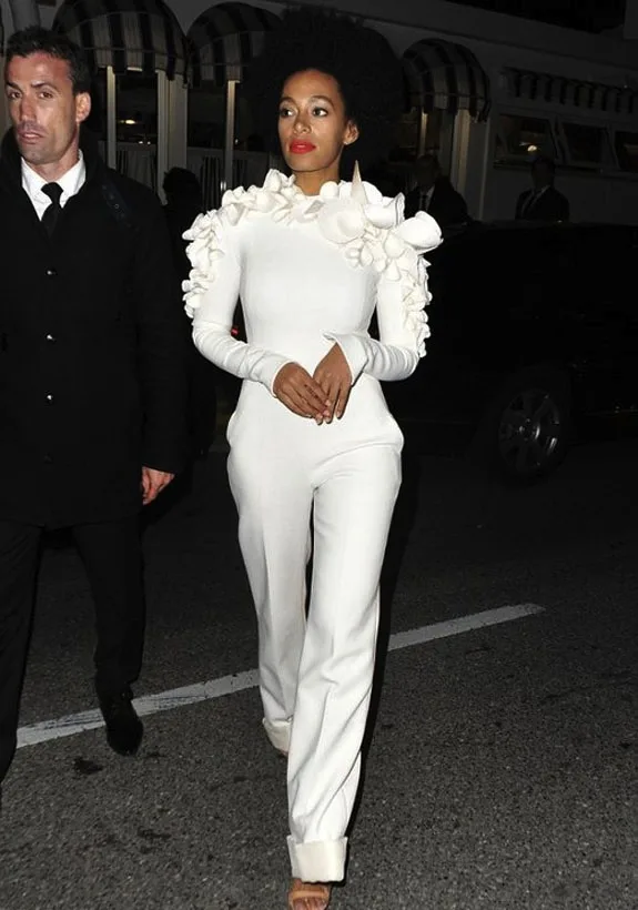 Solange Knowles’un Cannes Film Festivali’nde giydiği Stephane Rolland tulum takıma ba-yıl-dık! Desenleri en iyi karıştıran isimlerden Solange’ın beyaz yorumu sizce de mükemmel değil mi?