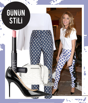 Blake Lively L’Oreal’in yeni yüzü olduğundan beri yüzünde güller açıyor. Tanıtım için gittiği Paris’te karşımıza puantiyeli ve barok detaylı Emanuel Ungaro pantolonu ile çıkan Blake Lively günün stilinde;