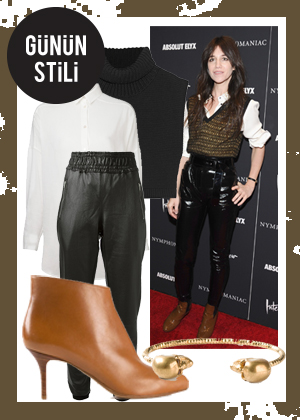 Rugan deri pantolonu ve süveteriyle farklı tarzını ortaya koyan Charlotte Gainsgobourgh’dan ilham alıyoruz.  charlotte-gainsbourg CHARLOTTE GAINSBOURG