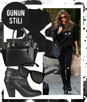 Gisele Bündchen, dünyanın en çok kazanan modeli olmasının dışında bir de iki çocuk annesi. Fakat bu, kendisini yoğun çalışma temposuna rağmen özel hayatında stil sahibi olmaktan alıkoymuyor. Uzun bacaklarına giydiği siyah yırtık jean’i ve Kenzo sweatshirt’ü ile Gisele, baştan aşağı siyah görüntüsü ile günün stilinde;