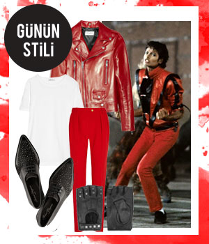 Yılın en sıcak günü olması umrumuzda değil. Saint Laurent’in kırmızı biker ceketini omuzlarımıza atıp kırmızı pantolonumuzu giyiyoruz. Beyaz fırfırlı çoraplarımız ve sivri burun oksford ayakkabılarımıza Michael Jackson’ın Thriller’ı eşliğinde dans dolu bir geceye hazırlanıyoruz.