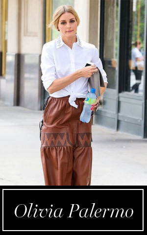Olivia Palermo içindeki Vahşi Batı sevgisini taba rengi deri eteğiyle ortaya çıkarıyor.Alejandro-Ingelmo