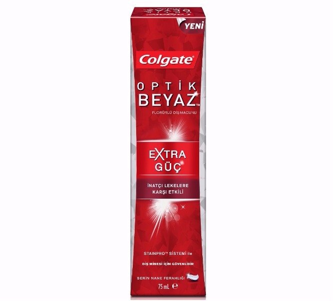 Etkili bir gülümsemenin tam zamanı! En güzel gülüşünle görenleri hayrete düşürmen için özel olarak tasarlanan Colgate Optik Beyaz Extra Güç* Diş Macunu ile gülüşün artık daha güçlü! Sezon Trendi: Bembeyaz ve Güçlü Gülüşler! Hem sağlığınız, hem de güçlü ve güzel bir gülümseme için geliştirilen yeni Colgate Optik Beyaz Extra Güç* Diş Macunu ile yeni leke oluşumlarını engelleyerek bembeyaz gülüşlere sahip olun! Artık gün boyu içilen çay ve kahvenin oluşturduğu lekelere veda etme vakti! Gücünü Gülüşünden Al! Gülümsemenizde fark yaratacak ışıltılı gülüşler için Colgate Optik Beyaz Extra Güç* klinik olarak kanıtlanmış StainPro teknolojisi sayesinde düzenli kullanım ile çay ve kahvenin oluşturduğu lekeleri önlemeye ve  bembeyaz, sağlıklı dişlere kavuşmaya yardımcı oluyor. Bembeyaz ve sağlıklı dişler için tasarlanan Colgate Optik Beyaz Extra Güç* Diş Macunu ile gücünüzü gülüşünüzden alın!   *parlaklık Colgate Optik Beyaz Beyazlat ve Güçlendir’e kıyasla