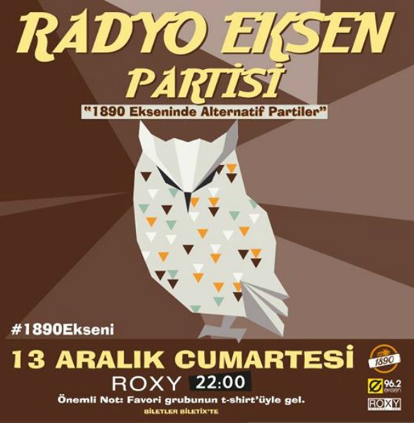 14 yıldır Türkiye’nin alternatif hayatına yön veren Radyo Eksen’in, 1890 Ekseni’nde alternatif partilerinin yenisi 13 Aralık Cumartesi gecesi Roxy’de gerçekleşiyor.