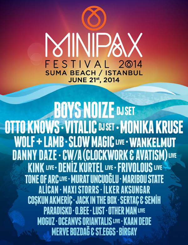 Elektronik müziğin yeni festivali Minipax, yazın favorisi Suma Beach’te başlangıç yapıyor. Boys Noize, Vitalic, Otto Knows gibi elektronik müziğin heyecanlandıran isimleri cumartesi günü Suma’da olacak. Biletler için Biletix’e