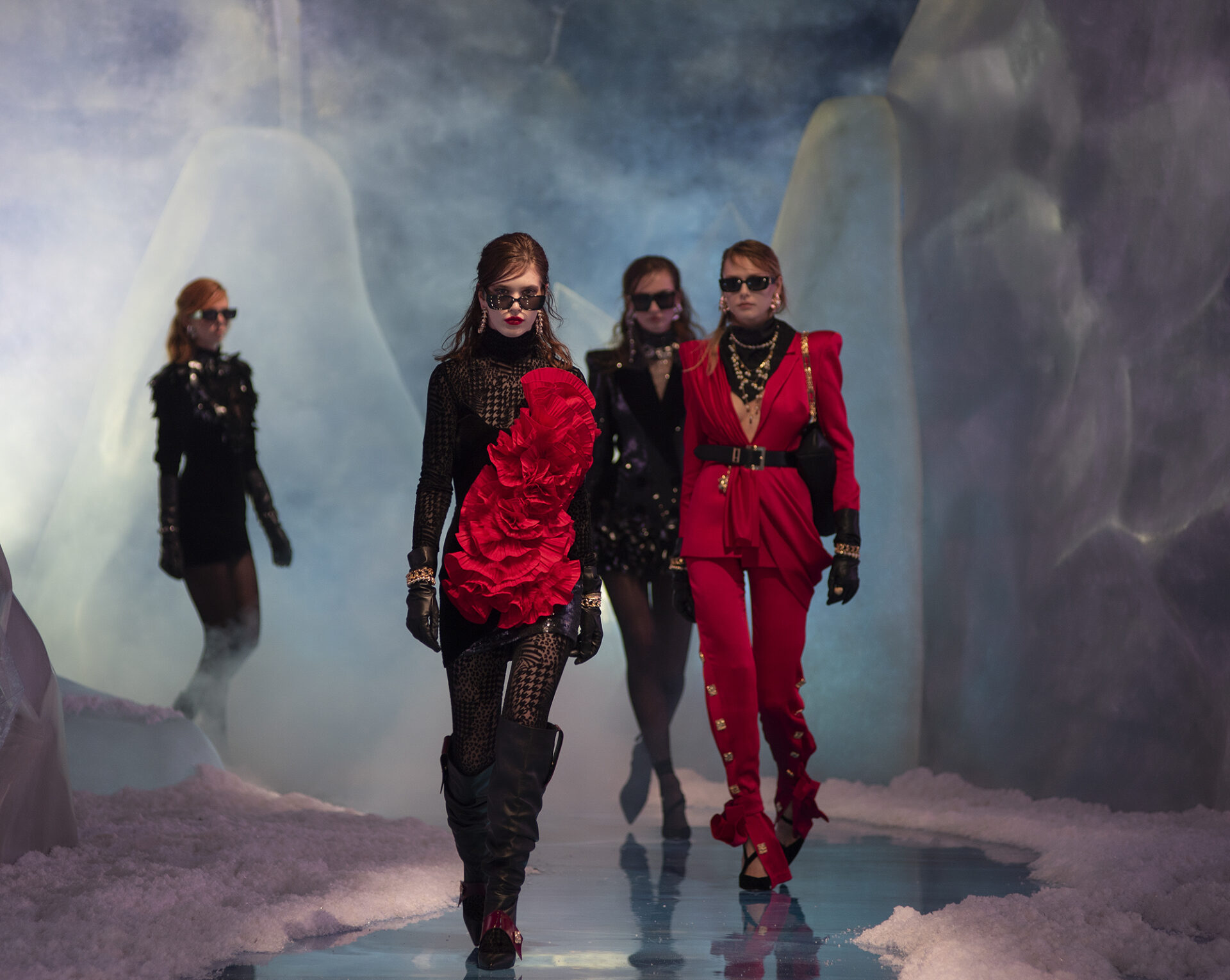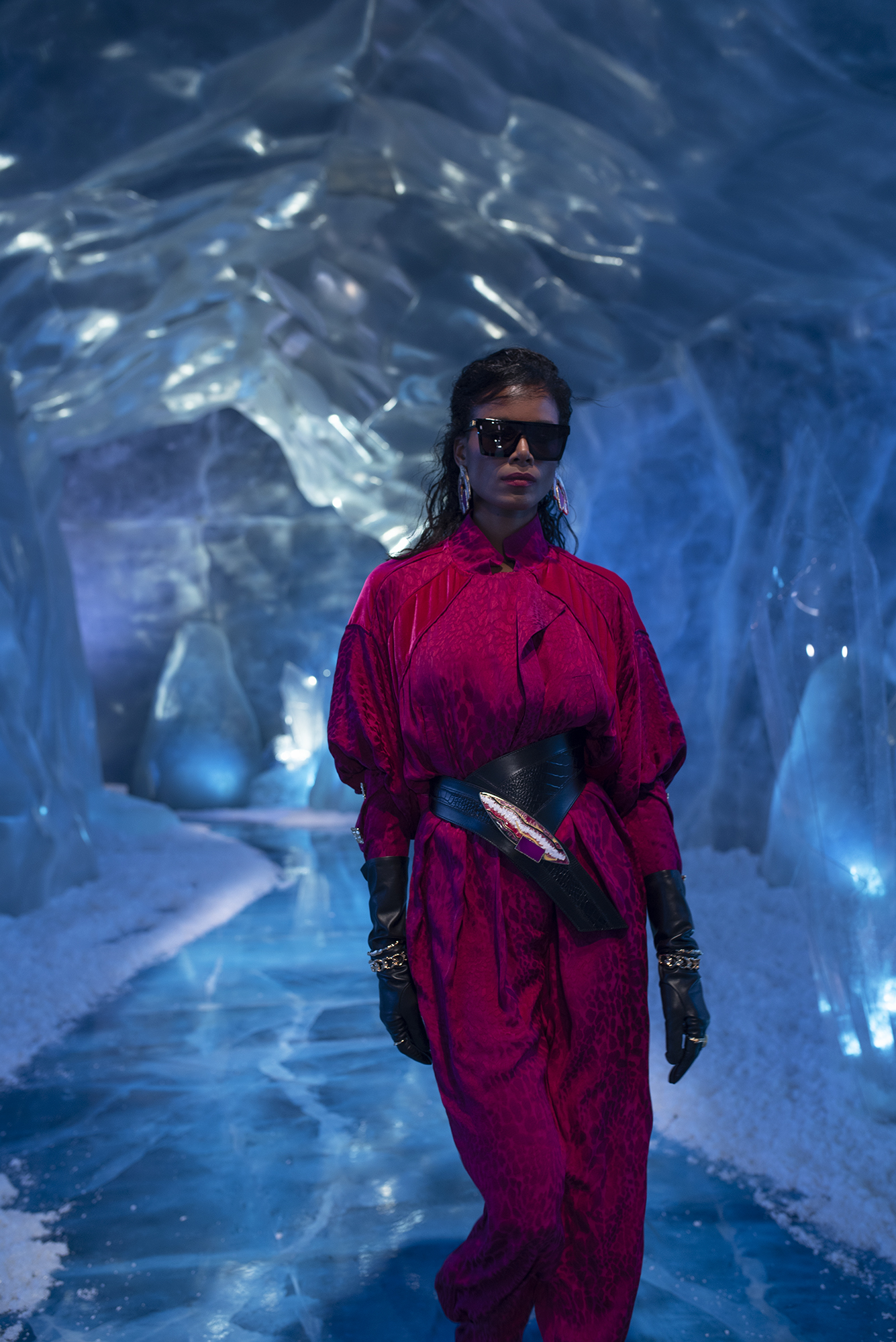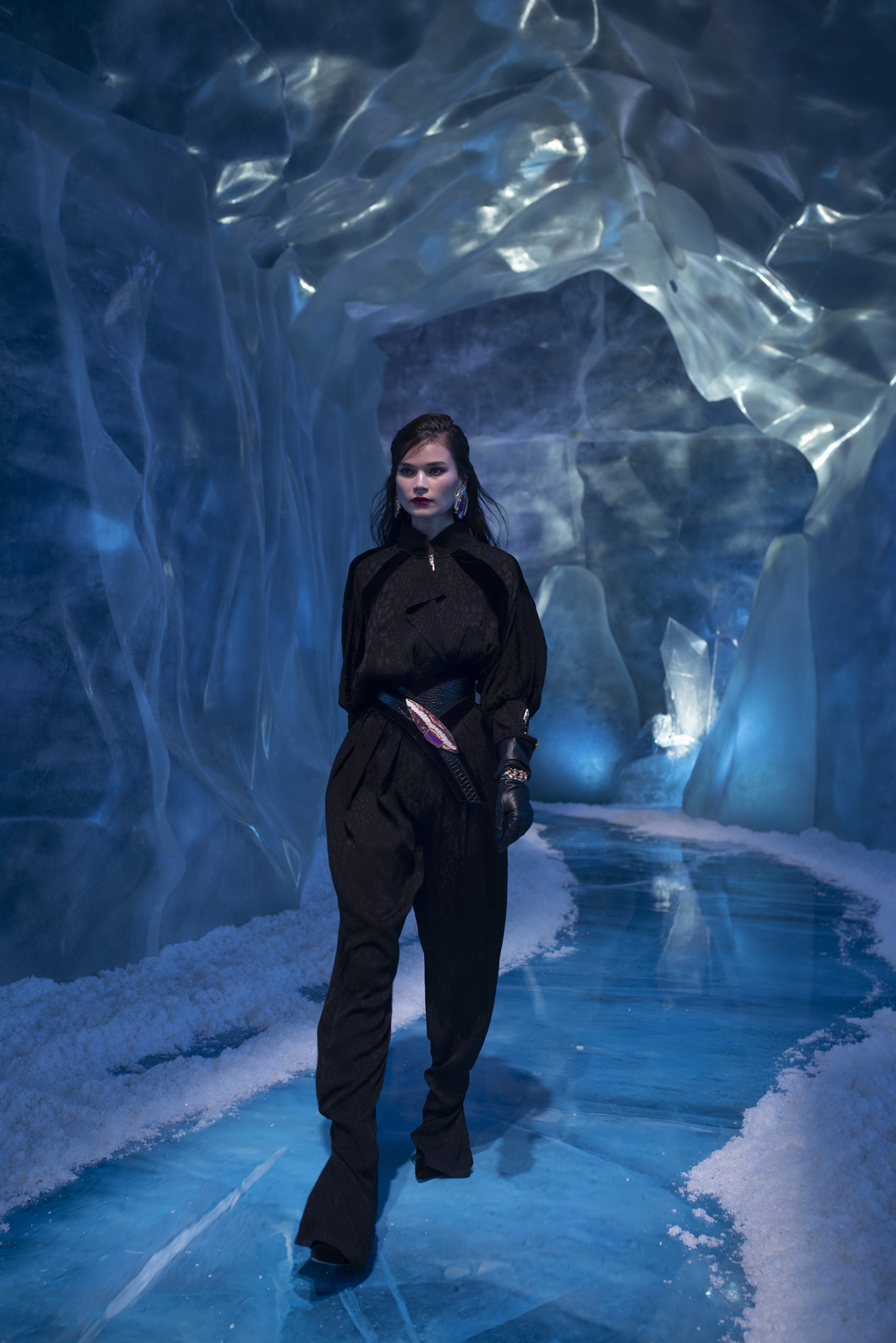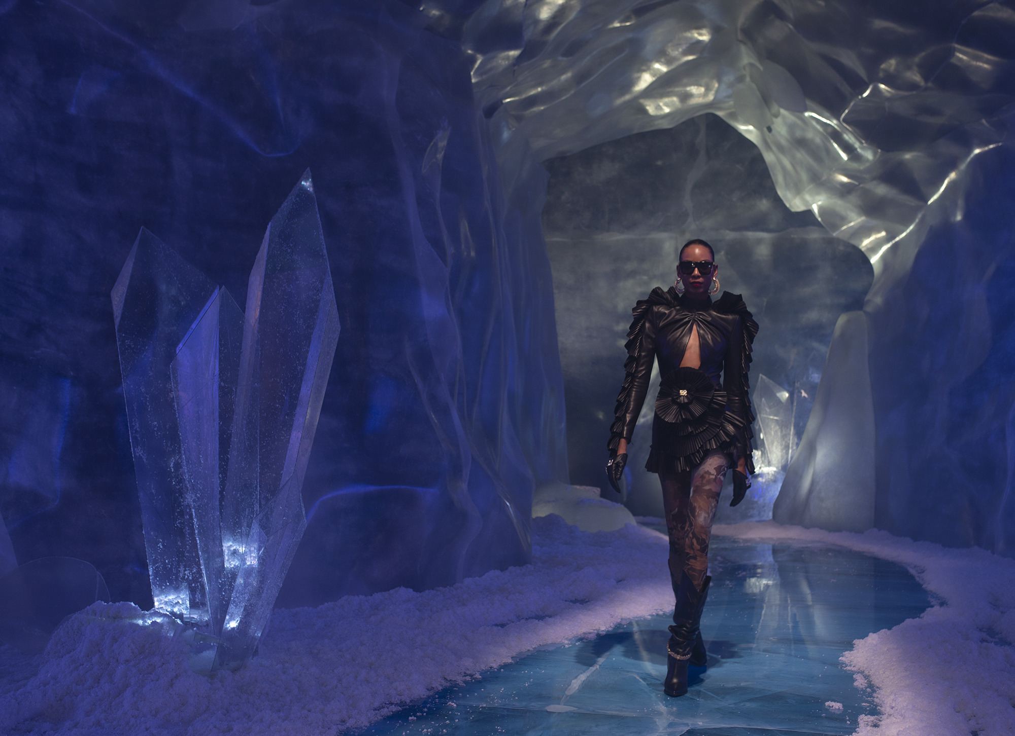 Yeni koleksiyonunu kendi tasarladığı bir dünyada sunan HALEIA, bu cesur dünyayı bir buz mağarasının içinde kurdu. HALEIA, Sonbahar/Kış 2021-2022 dijital defilesini içinde kristallerinde yer aldığı bu mağaralardan ilham alarak dekore ettiği bir dünyada gerçekleştirdi. Buz kristalleri gibi güçlü ve maskülen bir dokuyu tasarımlarının feminen yönüyle buluşturan HALEIA, oluşturduğu bu kontrastla HALEIA kadınını da bir atıfta bulundu. ‘Over Exposed’ vurgusunun hem sunulan tasarımlarda hem de kurulan bu dünyada desteklendiği dijital defile, dünya standartlarında bir görsel zenginlik sundu. Buz mağaralarının yaşadığımız dünya için keşfe açık olmasının HALEIA’ya yaptığı self-reflexive vurgunun yanı sıra, kaygan ve eriyen bir dünyanın içinde HALEIA’nın güçlü tasarımlarıyla bu dünya içerisindeki gücüne ve nasıl konumlanabileceğine dair ipuçlarını verdi.
