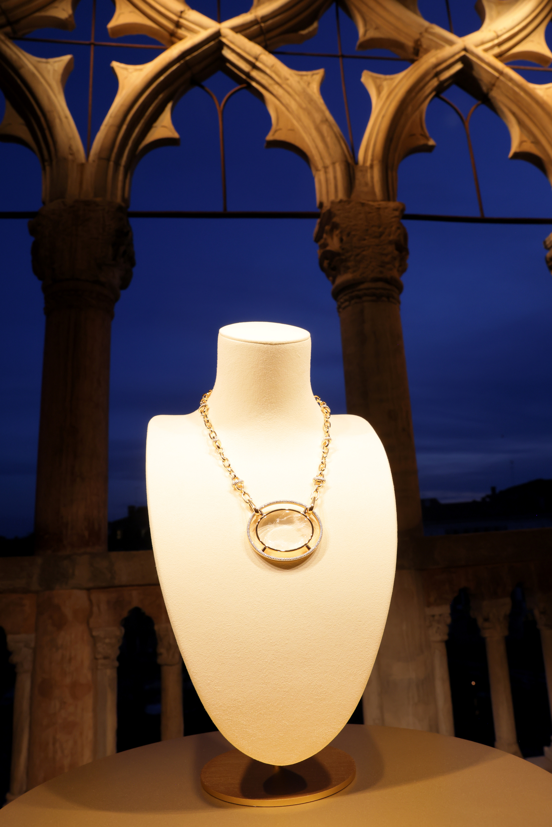 Pomellato Kreatif Direktörü Vincenzo Castaldo şunları ifade etti: “The Bernini Loupe” isimli kolye, çevremizdeki güzellikleri takdir etmemiz için bir davet niteliğinde; tıpkı Bernini’nin modellerinin bize yaratıcılık dehasına bir pencere sağlaması gibi.” Pomellato, Venedik Film Festivali sırasında Venedik’in zengin kültürünü ve kalıcı mirasını onurlandıran bir gala yemeği düzenliyor.