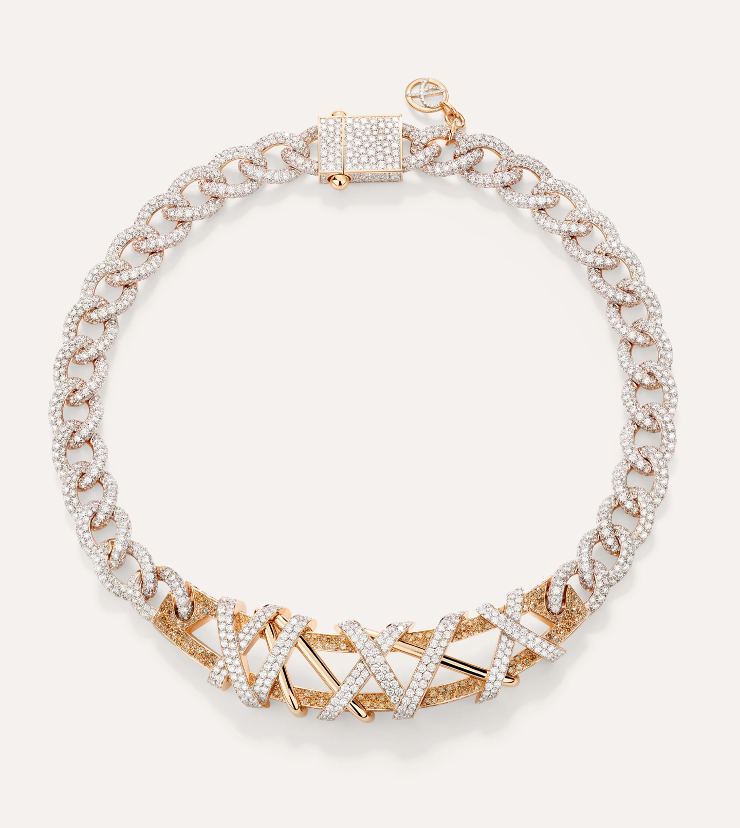 Pomellato, bu girişimi kutlamak amacıyla markanın İtalyan sanatına ve zanaatkârlığına duyduğu sevgiyi temsil eden eşsiz bir başyapıt olan “The Bernini Loupe” isimli yüksek mücevher kolyesini tasarladı. “The Bernini Loupe” isimli yüksek mücevher kolyesi, sonbaharda Venedik’i sıklıkla kaplayan sis gibi gizemli, hafifçe örtülmüş bir kaya kristali taşıyan pembe altın rengi bir kolye ucuna sahip. Kubbe şeklindeki bu değerli taş, büyütece benzeyen biçimiyle güzelliğin her formunun takdir edildiğini simgelemek üzere tasarlandı. Kaya kristali, kendisini çevreleyen elmaslarla birlikte ışık oyunları yaratarak Bernini’nin modellerinin ışıltılı kalitesini yansıtıyor.