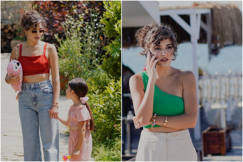 Eda stilinde yine canlı renkleri ve modern crop üstleri kullanırken, aksesuar seçimlerinde biraz daha olgun detaylar öne çıkıyor.