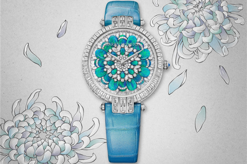 Krizantem çiçeğinden ilham alan tasarımda opal, safir ve 445 adet pırlanta yer alıyor. Saatin kadranında opaller ve değerli taşlar katmanlı kullanılarak 3 boyutlu, canlı çiçek ilüzyonu yaratılıyor ve renk patlamalarıyla bakanı içine alıyor.