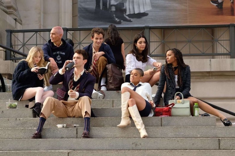 Tamamen yeni Gossip Girl kadrosu, nasıl giyineceğini gerçekten biliyor. Büyük boy düğmeli mikro mini etekler ve diz boyu çizmeler. Veya Constance Billard’daki öğrenciler gibi giyinmeye daha klasik bir yaklaşım getirmek istiyorsanız, okulun armasını gösteren bir kazak giyin.