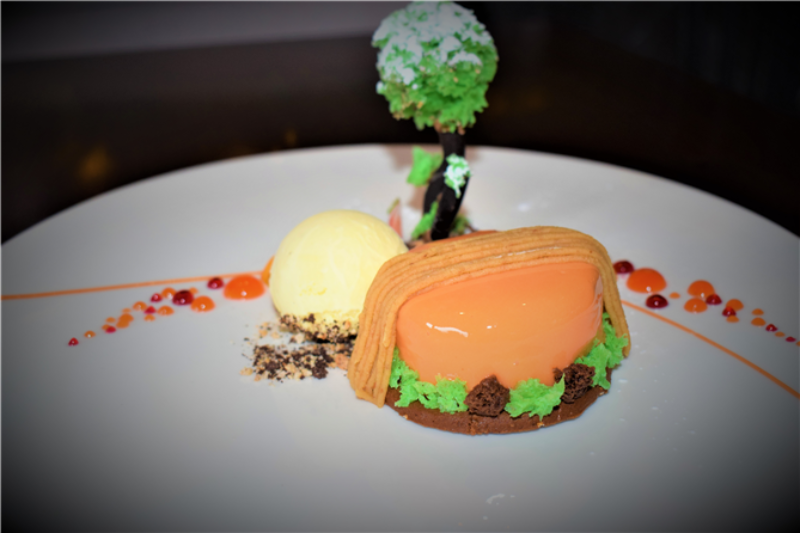 Başlangıçlarda somon pastırma, enginar ve karides terine, elmalı kereviz salatası, salatalık dilimlerine sarılı fındıklı kısır, fırınlanmış domates içinde cevizli peynir ezmesi ve kavuna sarılı füme et yer alırken, menünün devamında trüflü bal kabağı kreması ve portakal çektirmesi ile konfit ördekli ravioli, naneli limon sorbe, düşes patates, bürüksel lahanası, tereyağlı kestane, yaban mersini soslu çörek ve gratine edilmiş dana fileto & ayva konfit içinde hindi ragu ve son olarak zencefilli dondurma, dağ meyveleri sosu ile portakallı ve tarçınlı yeni yıl keki bulunuyor.
