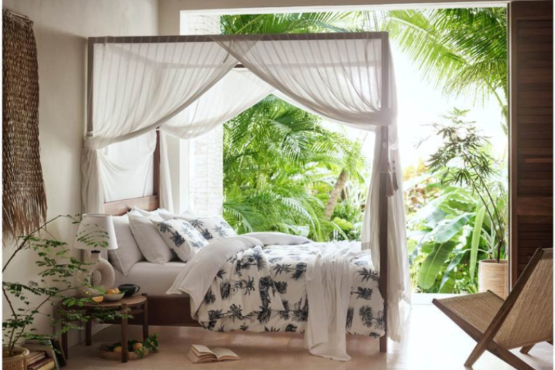 Evde yaz hissi için, parlak renklerde ve okyanus baskılarında minder kılıfları kullanın, bitki saksılarını en sevdiğiniz yeşilliklerle doldurun ve yere bir jüt halı döşeyin. Yemek masasında, kase veya altın tonlardaki yemek takımı ve aksesuarları deniz kabuğundan esinlenen şekillerle veya tukan ve palmiye ile süslenmiş seramiklerle servis etmeyi deneyin. Yatak odasında, batik, çizgi ve zikzak desenler bir ada hissi yaratıyor ve şehir hayatına da uygun çok yönlü plaj havlusu ve plaj çantaları var.