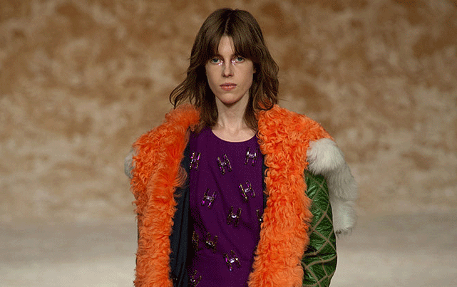 Size biraz vakit kazandıralım; eğer sokakta yürürken size bakılmasından hoşlanmıyorsanız yanlış adrestesiniz! Renkler, işlemeler, kürk, desenler. Henry Holland, 2013 sonbahar-kış koleksiyonunda sahip olduğu tüm malzemeleri hiç çekinmeden tasarımlarına serpiştiriyor. Retro desenlerle disko ateşini yeniden alevlendiren takımlar ve elbiseler, paçalarını üç boyutlu taşların süslediği pantolonlar ve kazaklar, renk paletindeki en canlı tonlara bürünen kürklü parkalar… Hayal dünyasının sınırlarında gezinen tasarımcı, kendi modasını yaratan kadınlara hitap ediyor.