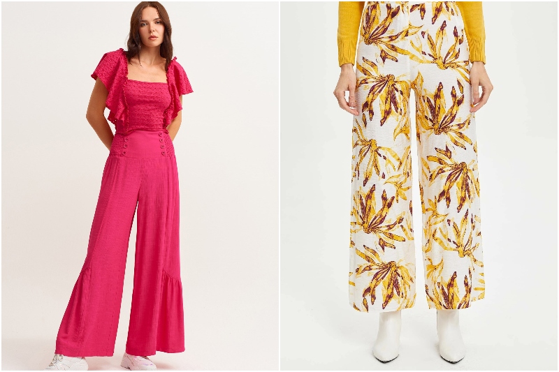 Bahar ruhunu tam anlamıyla yaşama istiyorsanız sizi renklere ve desenlere doğru alalım! Fuşya, yeşil, mor, sarı gibi renklerle tasarlanmış bol pantolonları ya da tropikal ve çiçek desenlerine sahip modelleri tercih edebilirsiniz. Bu modelleri monokrom bir görünüm yaratmak için aynı renk üstlerle birleştirebilir ya da beyaz basic bir üstten yardım alabilirsiniz.