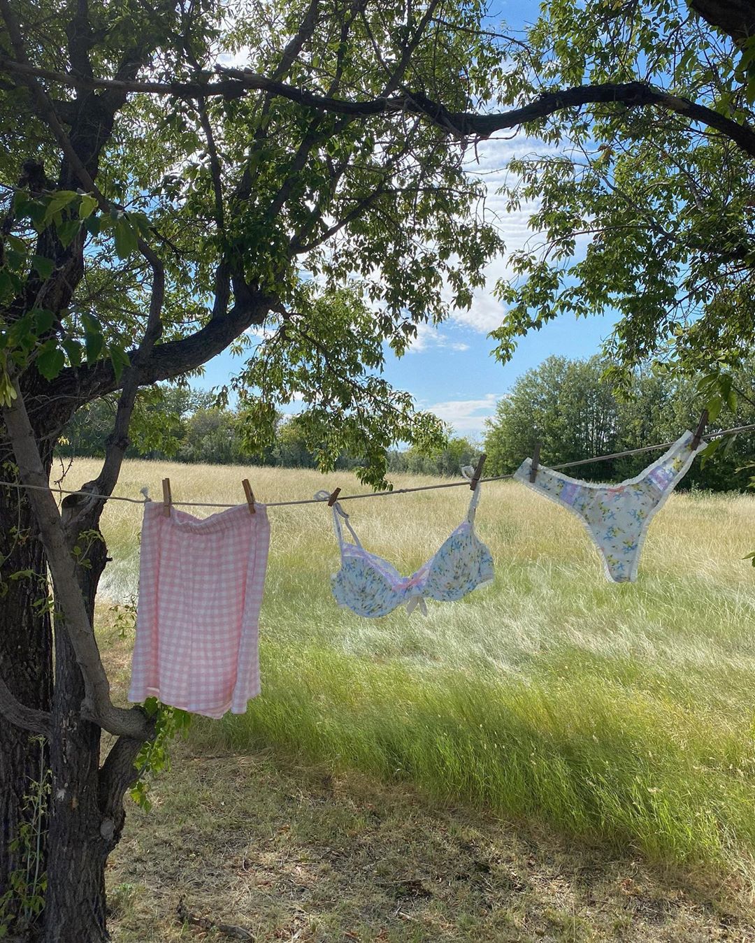 Cottagecore akımı fotoğrafların doğallık içeren karelerinde, pastel tonlarda yeni yıkanmış ve kurumaya bırakılmış kıyafetlere, iç çamaşırlara rastlamak da mümkün.