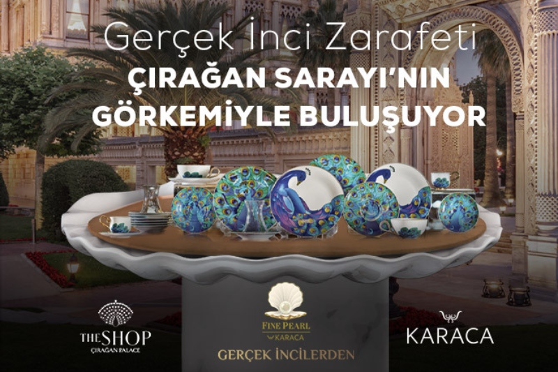 Karaca Çırağan Koleksiyonu ilhamını, Çırağan Palace Shop’un logosunda yer alan, Osmanlı sanatında iz bırakmış figürlerden tavus kuşu ve kuşun kanatlarındaki lale motifinden alıyor. Bu heyecanlandıran iş birliği ile gerçek incilerden üretilen koleksiyon, Çırağan Sarayı’nın görkemini evinizdeki sofralara taşıyor.