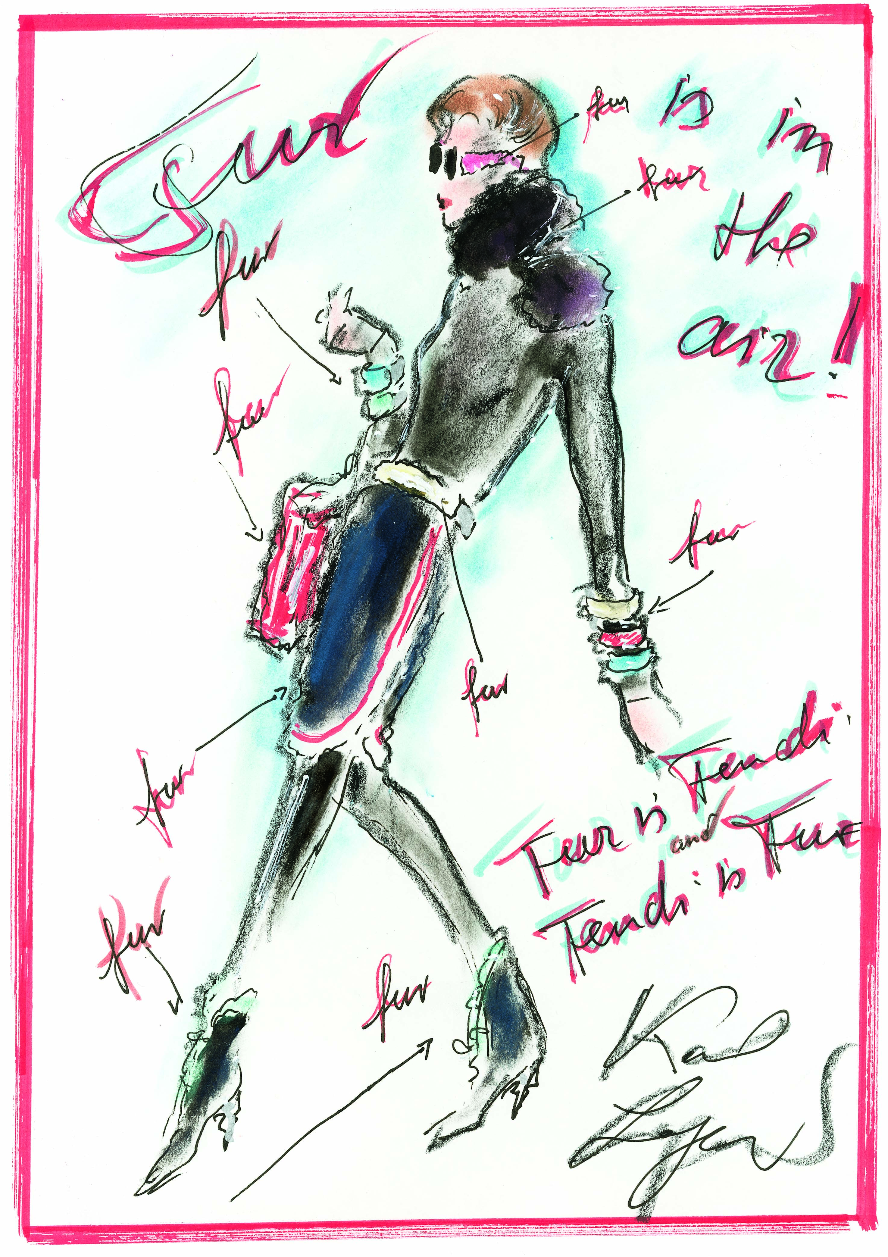 “Skeçlerim, fotoğraf gibidir. Tasarımlarımın ruhunu yansıttığı gibi ekibim en ufak ayrıntıları dahi onlara bakarak rahatlıkla görebilir” diyor Lagerfeld.