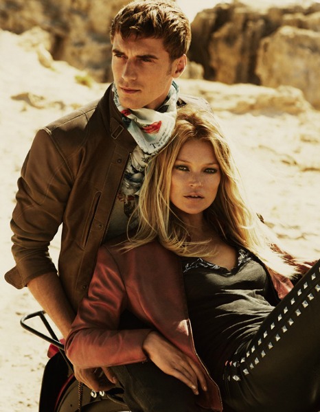 Markanın 2015 İlkbahar / Yaz kampanya çekimlerinde, kızgın güneşin altındaki Moss ve ona eşlik eden Clément Chabernaud çok cezbedici görünüyorlar.
