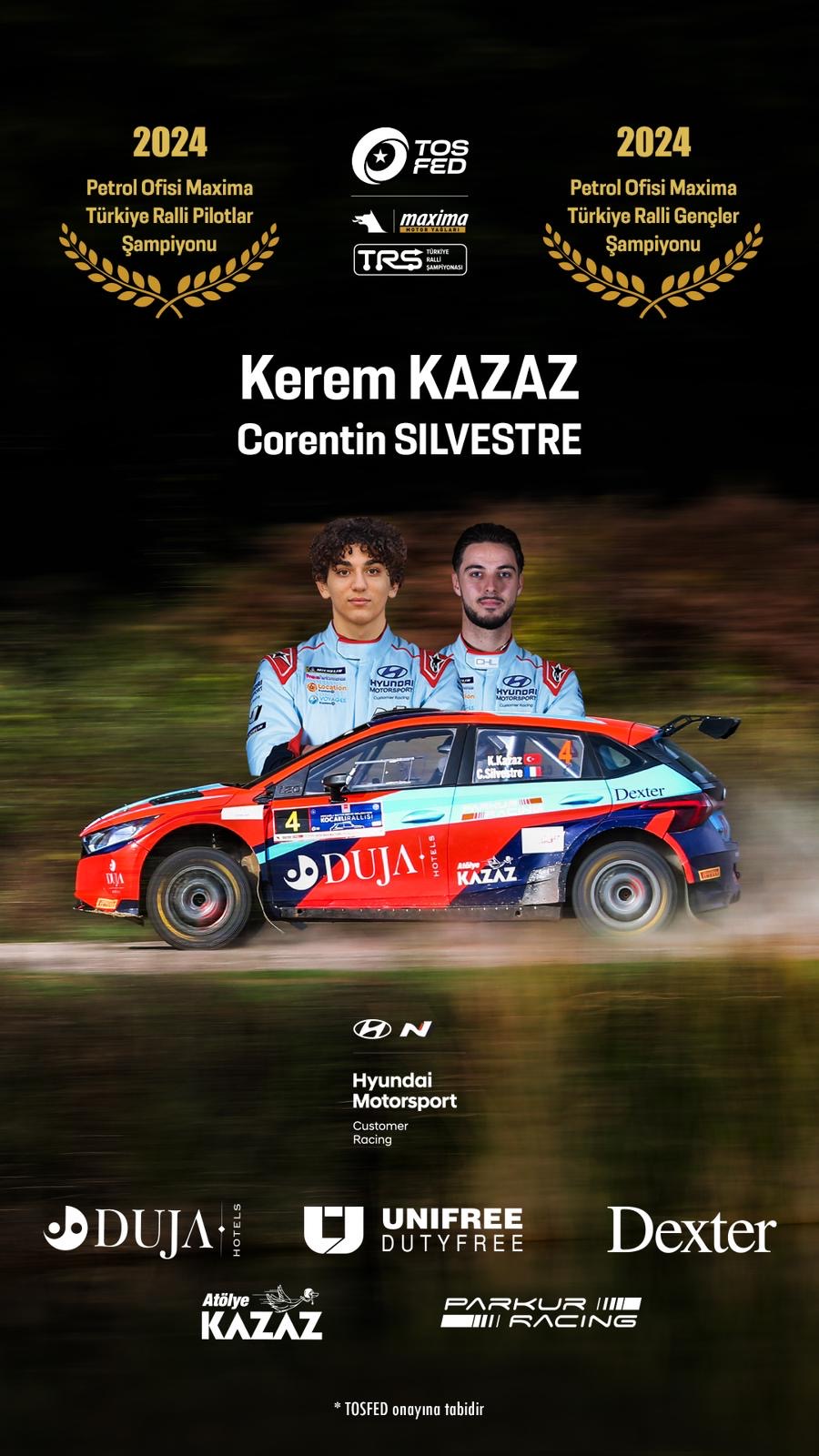 16 yaşında ilk rallisini Letonya’da yaparak Türkiye’nin En Genç Ralli Pilotu ünvanına sahip olan, bu yıl Şubat ayında 18 yaşına girer girmez almaya hak kazandığı ehliyeti ile katıldığı Türkiye Ralli Şampiyonası’nın ilk yarışı olan Sarıkamış Rallisi’nde elde ettiği galibiyet ile Türkiye’de ilk genel klasman rallisini kazanmayı başaran Kerem Kazaz, geçtiğimiz hafta sonu sona eren 2024 Türkiye Ralli Şampiyonası’nda şampiyon olarak tarihe geçti.