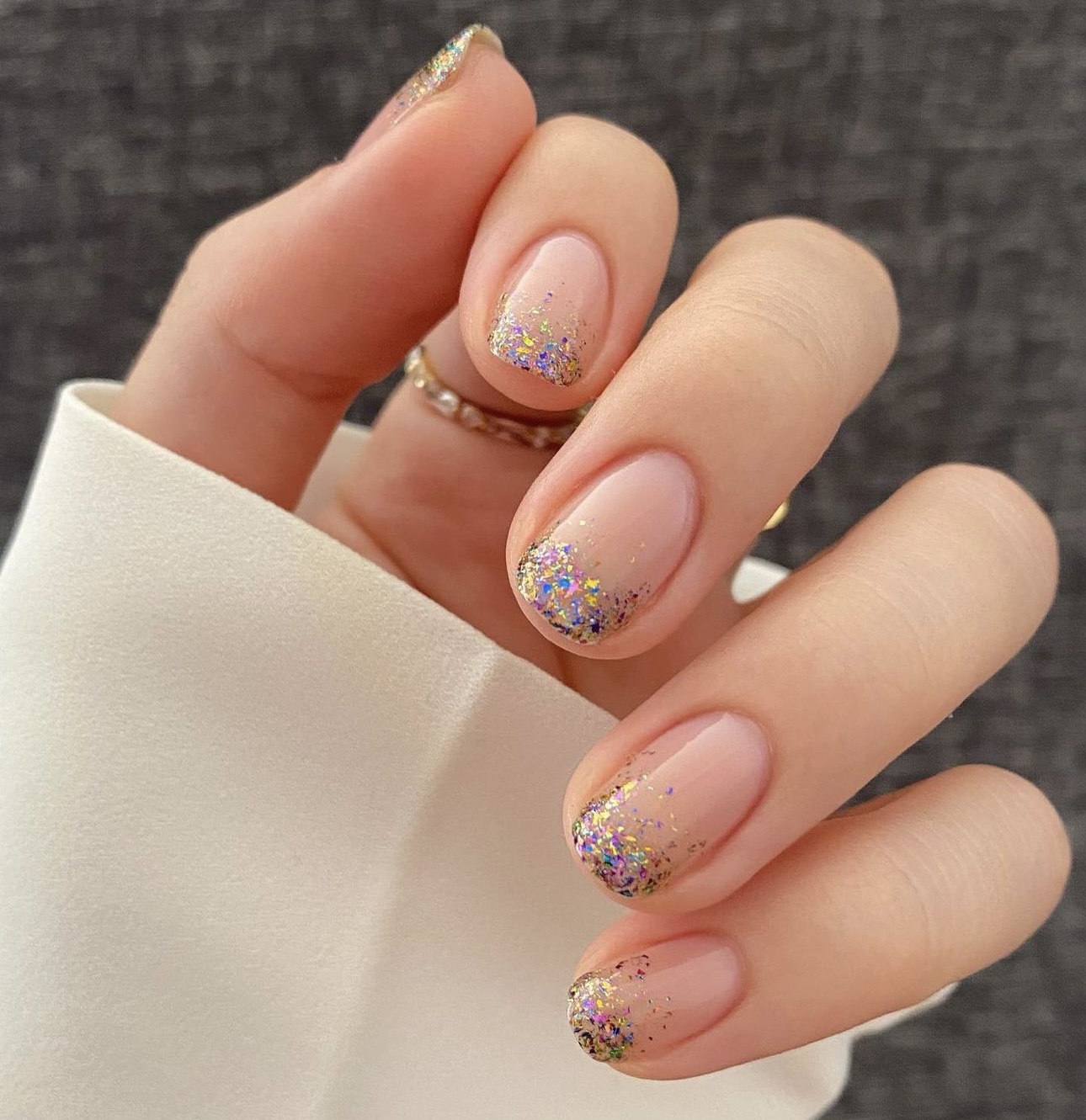 Kısa tırnak seviyor ve ışıltıdan vazgeçemiyorsunuz. O halde doğal tonlarda bir ojenin üzerine renkli ve ışıltılı dokunuşlara ne dersiniz? Her kombininize uyum sağlayacak bu modele mutlaka bir şans vermelisiniz.