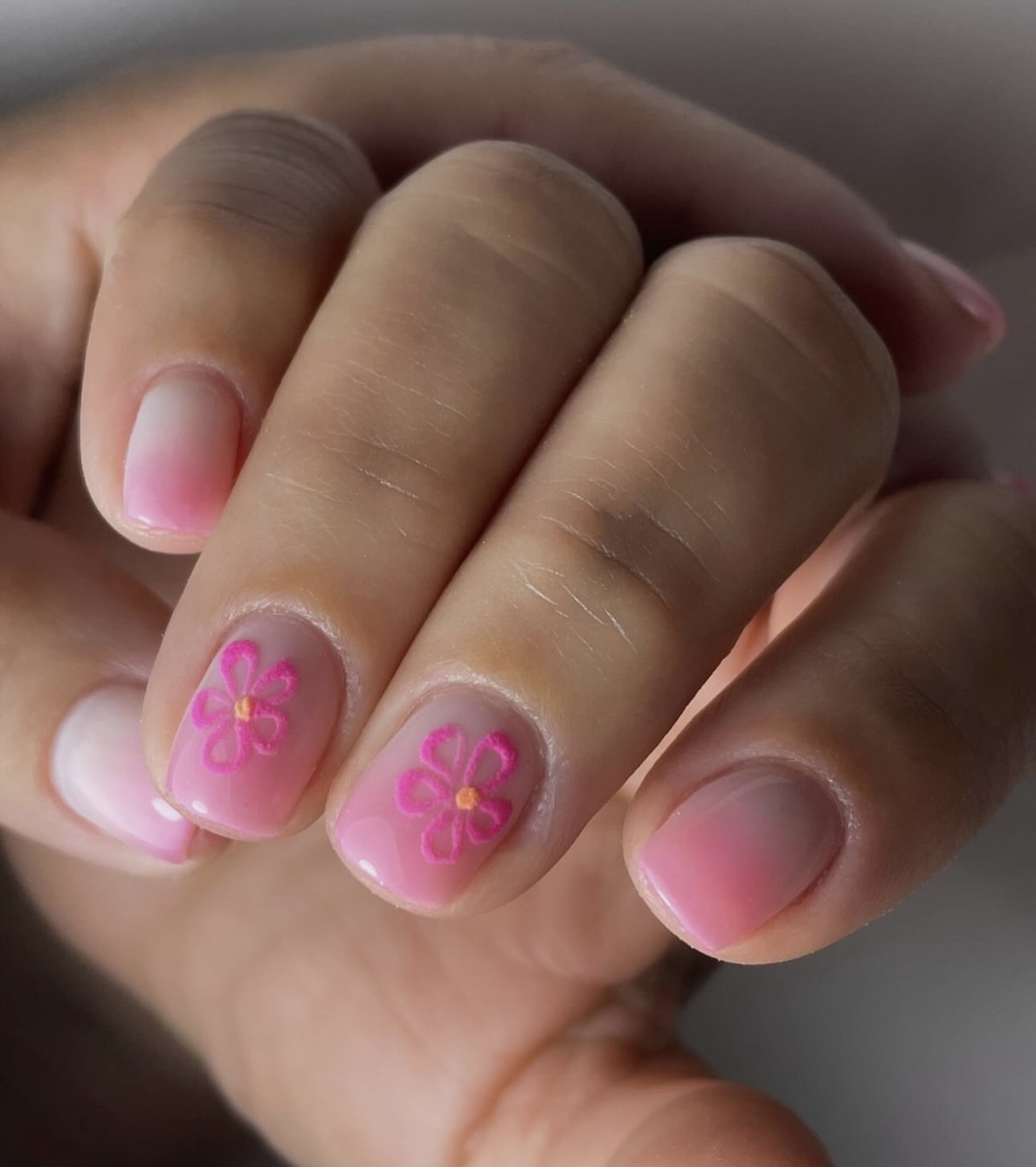Pembe ombre french’in çiçek desenleriyle buluştuğu bu nail art ile stilinizi renklendirebilirsiniz. Sünger yardımıyla uygulayabileceğiniz bu model; aynı zamanda tırnaklarınızı uzun gösterecek.