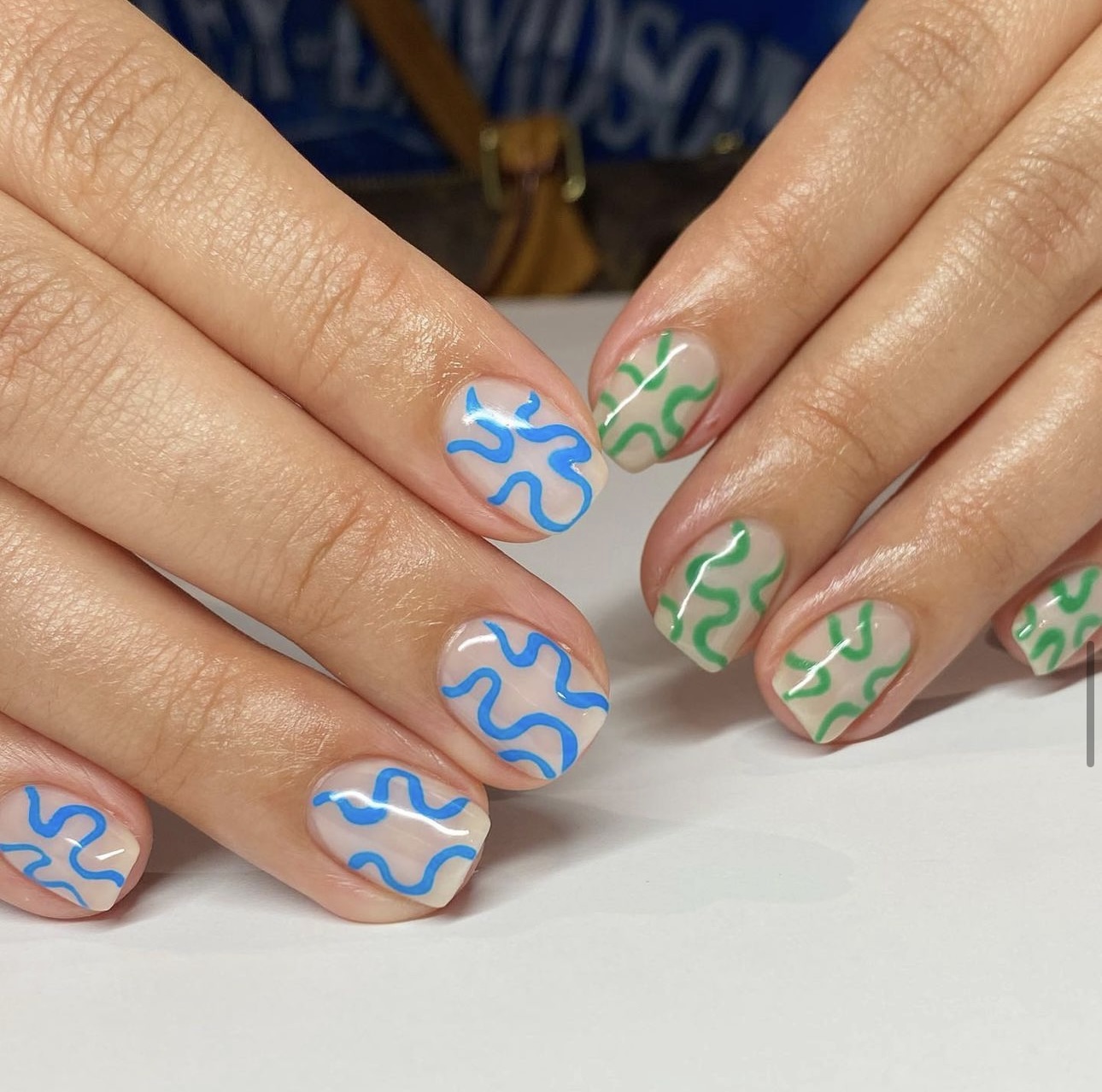 Farklı kutuplardan iki renk seçebilir, kolay kıvrımlarla ortaya neşeli ve eğlenceli nail artlar çıkarabilirsiniz.