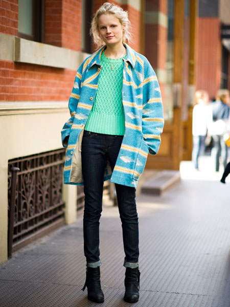 Jean’inizi renkli bir triko ve desenli bir palto ile tamamlayın. Hazırlanmak hiç bu kadar kolay olmamıştı!