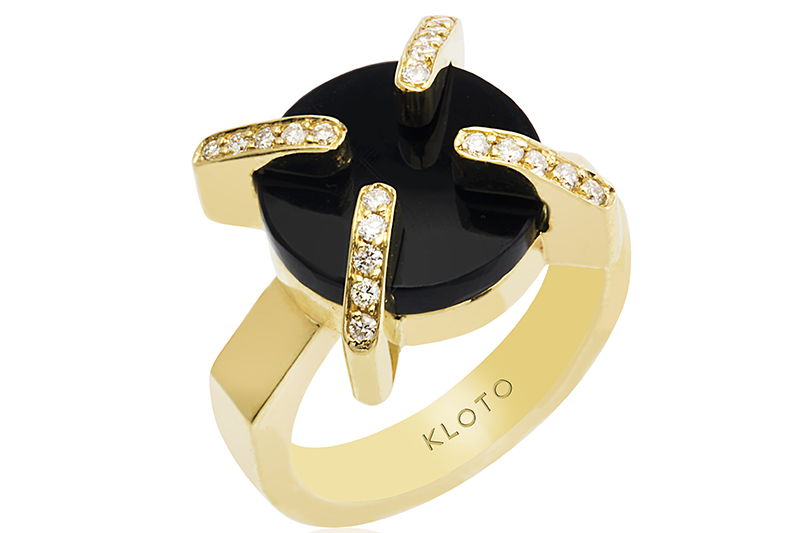 18 ayar altın çubukların birleştirdiği, derin bir siyaha sahip olan onyx taşı kara deliğin sonsuz derinliğini ve gizemini temsil ederken, yıldızları temsil eden pırlantanın ışıltısıyla birleşiyor. Bu koleksiyonla Kloto’da ilk kez altın ve pırlanta kullanılmış oluyor.