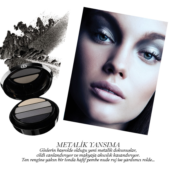 Güçlü gölgelerle vurgulanan sezon makyajı, doğallığa bir tür övgü niteliğinde. Giorgio Armani renk paleti ise işte bu yalın görünümün temelini atıyor. FAR