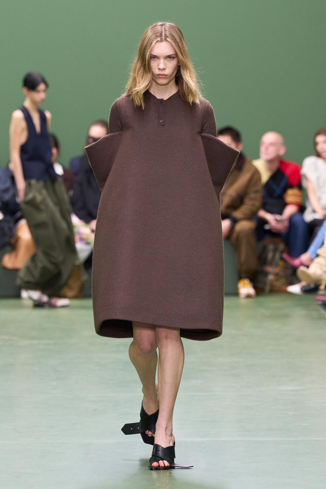 Jonathan Anderson’un sonbahar koleksiyonunda teknik açıdan dikkat çekici bir özgünlük vardı. Eski aristokratik tarzın modern yorumları, büyüleyici detaylarla zenginleştirildi. Özellikle sabahlık paltolar, klasik tarzı modernleştiren ve güçlü bir ifadeye dönüştüren özgün tasarımlarıyla dikkat çekti.
