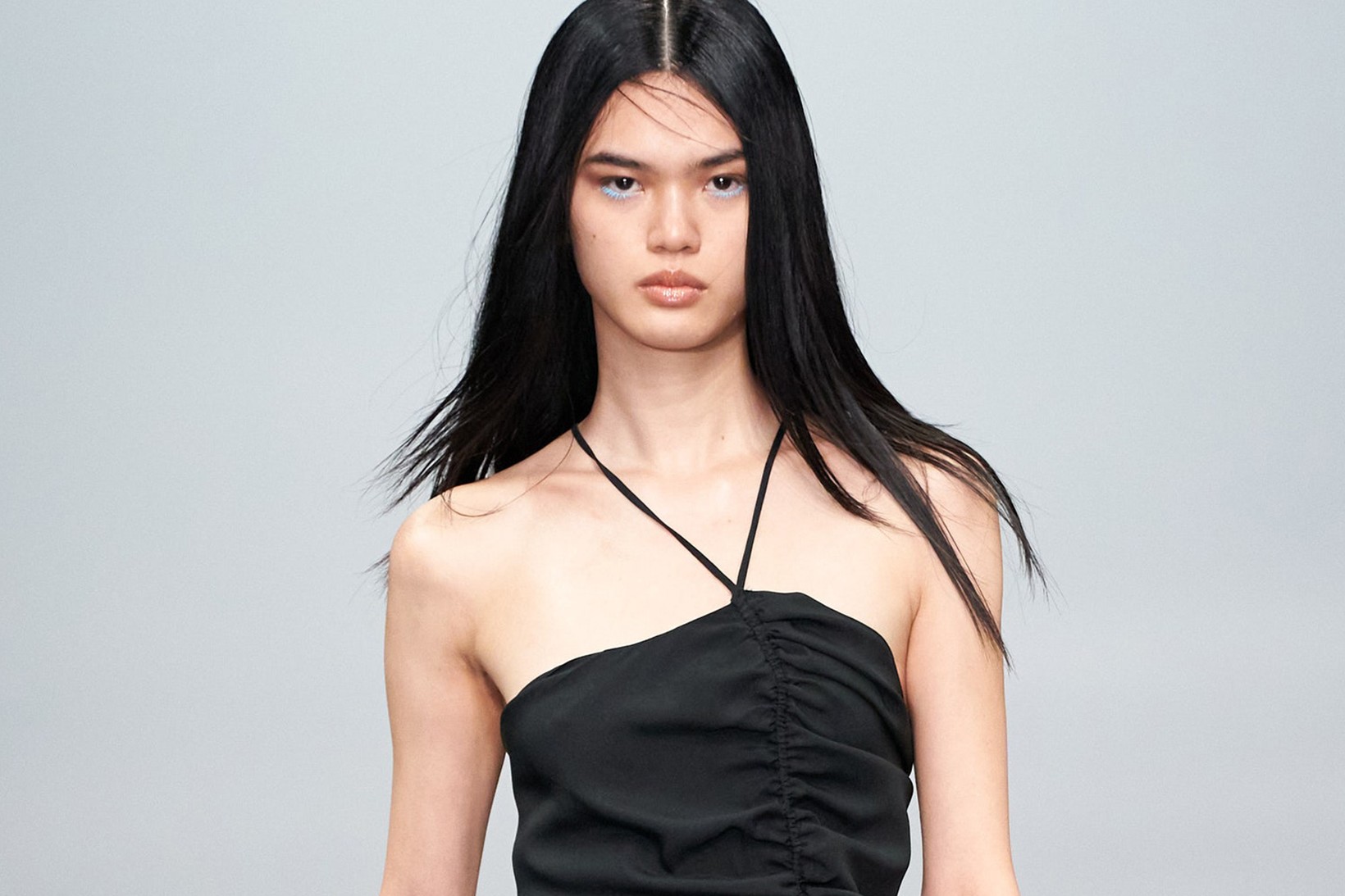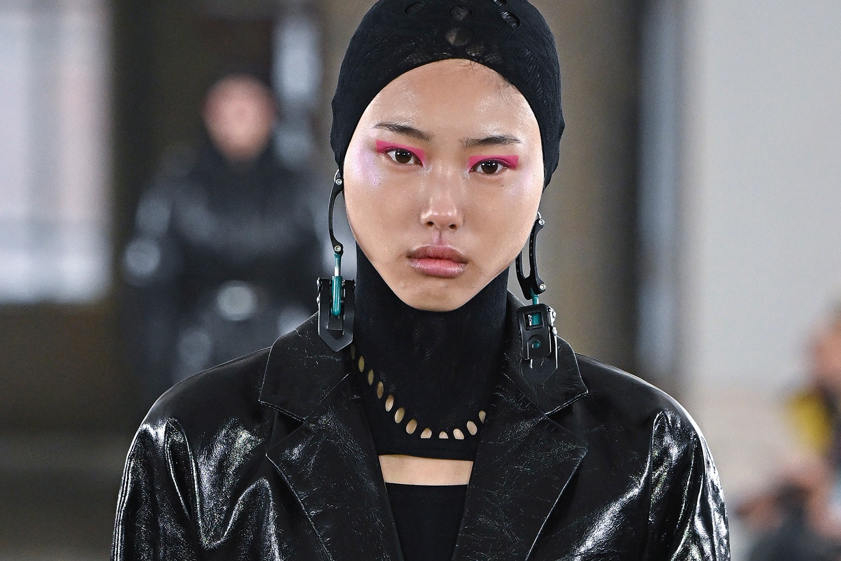 Isamaya Ffrench modellerin görünümünde modern tarzı tercih etti. Modeller, göz kapaklarında dikdörtgen şekli oluşturan tek renkli farlar kullandı.