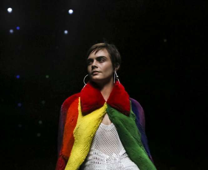 Burberry Sonbahar / K?? 2018-19 defilesine damga vuran isimlerden biri de Cara Delevingne oldu. Suni gökku?a?? renklerinde bir kürkle defilenin kapan???n? yapan Delevingne, göz kama?t?r?c?yd?.