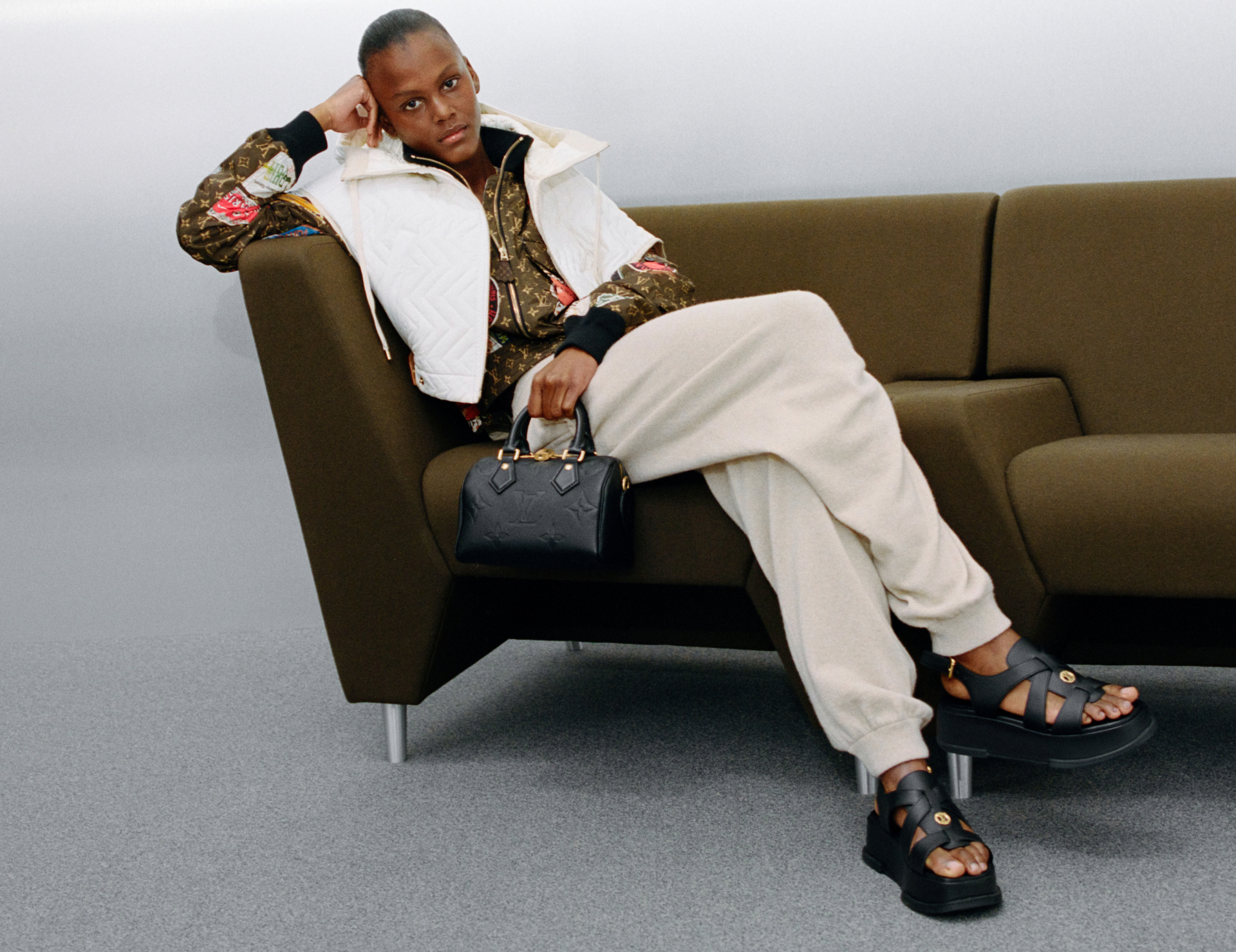 “Flight Mode” kapsül koleksiyonu hareket ve rahatlamayı eşit ölçüde kapsadığından, ayakkabılar, ayırt edilebilir grafik dış tabanı ve üst kısımdaki patikadan ilham alan detaylarıyla dinamik LV Rush spor ayakkabısından, Louis Vuitton imzalı toka ile süslenmiş terlik ve sandaletlere kadar birçok model, bu koleksiyon kapsamında sunuluyor. “Élysée Palace” animasyonu, aynı zamanda ikonik “Pool Pillow” terliğinin üzerine basılmış veya “Lous” model arkası açık spor ayakkabıda deri üzerine işlenmiş yamalar olarak da kullanılıyor.