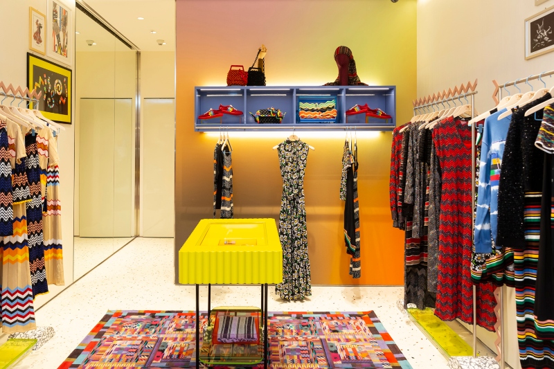 Bu mağazanın tasarımı modern parçaların ve Missoni’nin geçmişinin bir karışımını kapsıyor ve ultramodern teşhirleri ve mimari detayları vintage mobilyalarla birleştiriyor. Aksesuarlar modern Wunderkammers (Merak Dolapları) görünümü verilmiş gardıroplarda sergileniyor. Çoklu fonksiyonlu aksesuarların sergilendiği vitrinler geri dönüştürülmüş pleksiglastan yapılma iken mankenler ise Missoni Home stoklarından gelen kumaşlara bürülü.