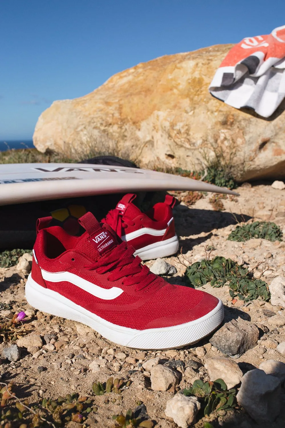 Vans yeni UltraRange koleksiyonuyla profesyonel sörfçüsü Pat Gudauskas’un mükemmel sörf deneyimi aray?? yolculu?undan yararlanarak farkl? arazi, manzara ve hayat tarzlar?yla uyumlu bir form tasarlama aray???na giriyor.