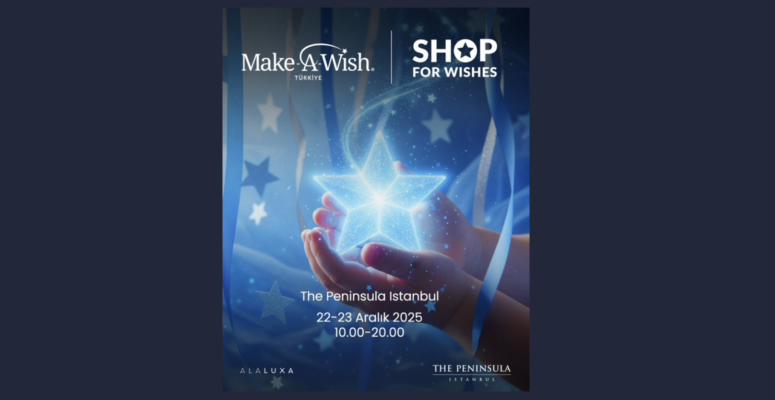 Make-A-Wish Türkiye, 22–23 Aralık 2025 tarihlerinde Alaluxa’nın konsept danışmanlığında ve The Peninsula Istanbul’un ev sahipliğinde, yılbaşı ruhunun tüm coşkusuyla yaşanacağı “Shop for Wishes” Alışveriş Etkinliği düzenliyor.