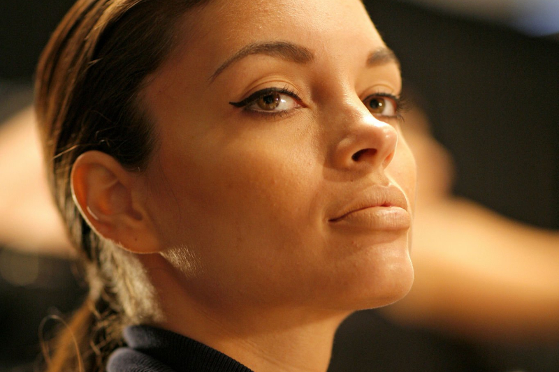 ‘Aynaya aşağı doğru bakarak, küçük fırça darbeleriyle ince bir eyeliner kalemle göz kapağınızı hizalayın. Sona ulaştığınızda, doğrudan aynaya bakın ve kanadınızın bitmesini istediğiniz yere bir nokta çizin. Kulağınızın üst kısmı yönünde olmalıdır. Bir kuyruk oluşturmak için üst kirpik çizginizden noktaya bir çizgi çizin. Çok şiddetli olmayan güzel bir nokta oluşturmak için noktaya yaklaştıkça baskıyı gevşetin. Herhangi bir lekeden kurtulmak için, en iyi kapatıcınızdan bazılarını bir fırçanın üzerine koyun ve bulanıklığı temizlemek ve kuyruğu belirginleştirmek için çizginin altına alın.’