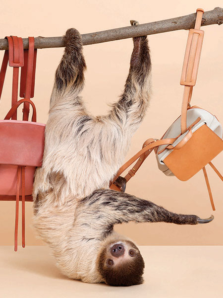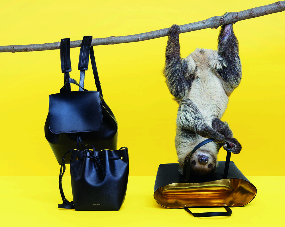 Çanta markası Mansur Gavriel’in 2015 İlkbahar kataloğu için poz veren hayvanlar, seksi topmodellerin pabucunu dama atıyor.
